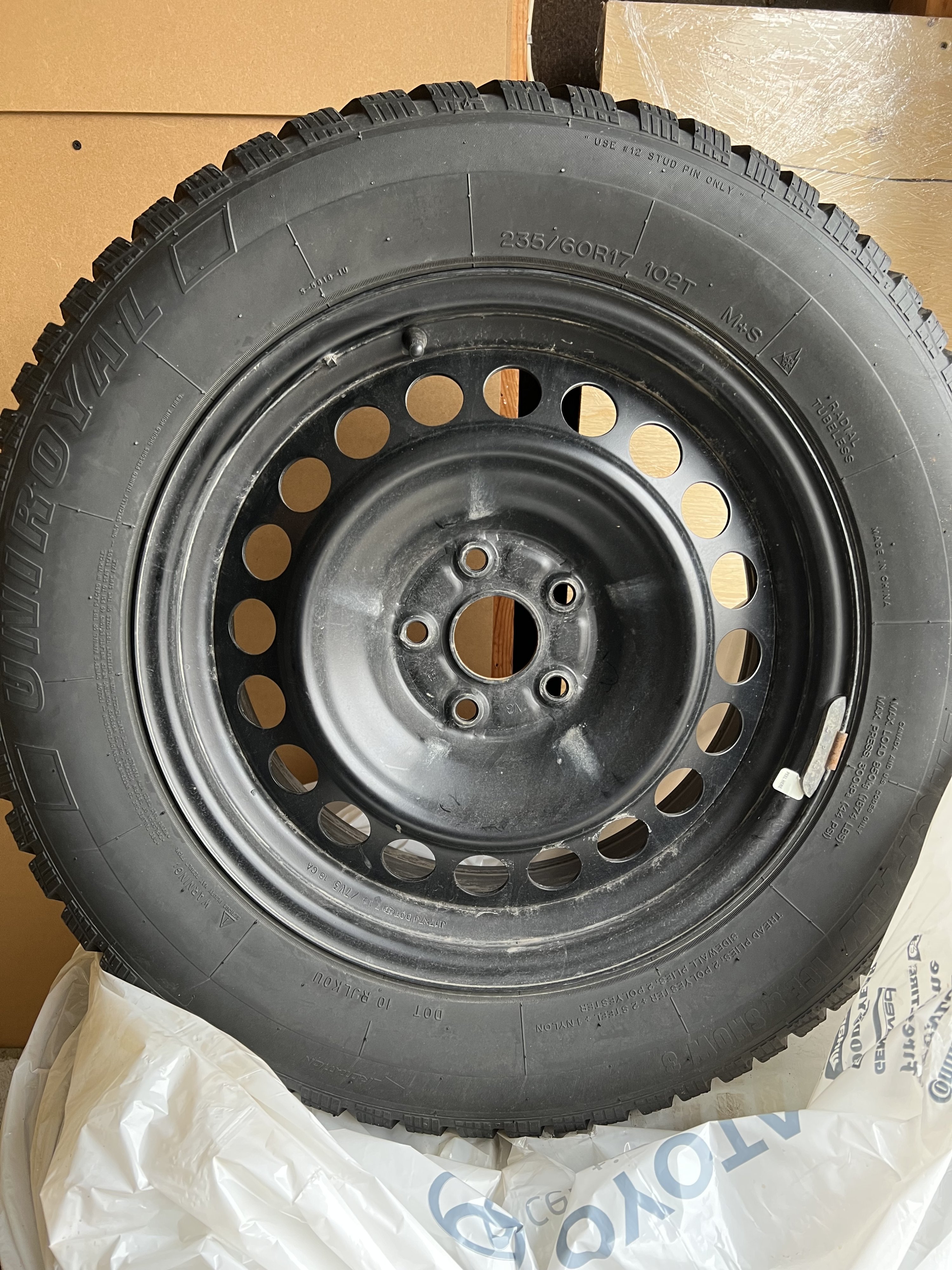 出4条9成新雪胎连rim一起,只开过一个冬天5000公里左右,去年在Toyota车行买的,用在Toyota Sienna,胎尺寸235/60R17,有意请电或者短信:6479782728