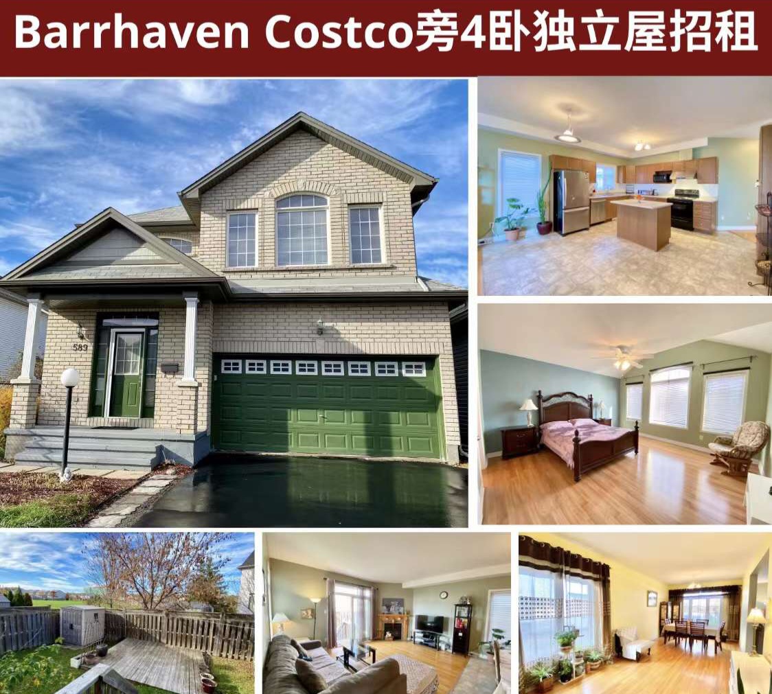 好地段好学区,近Costco/Amazon、购物中心及416高速入口。4卧+2.5卫双车库,宽敞明亮,全屋木地板及复合地板,优质不锈钢电器加长橱柜、带空调,后院靠公园全围栏带露台。$2600/月,如需家俱可协商,12月底可入住,欢迎咨询。