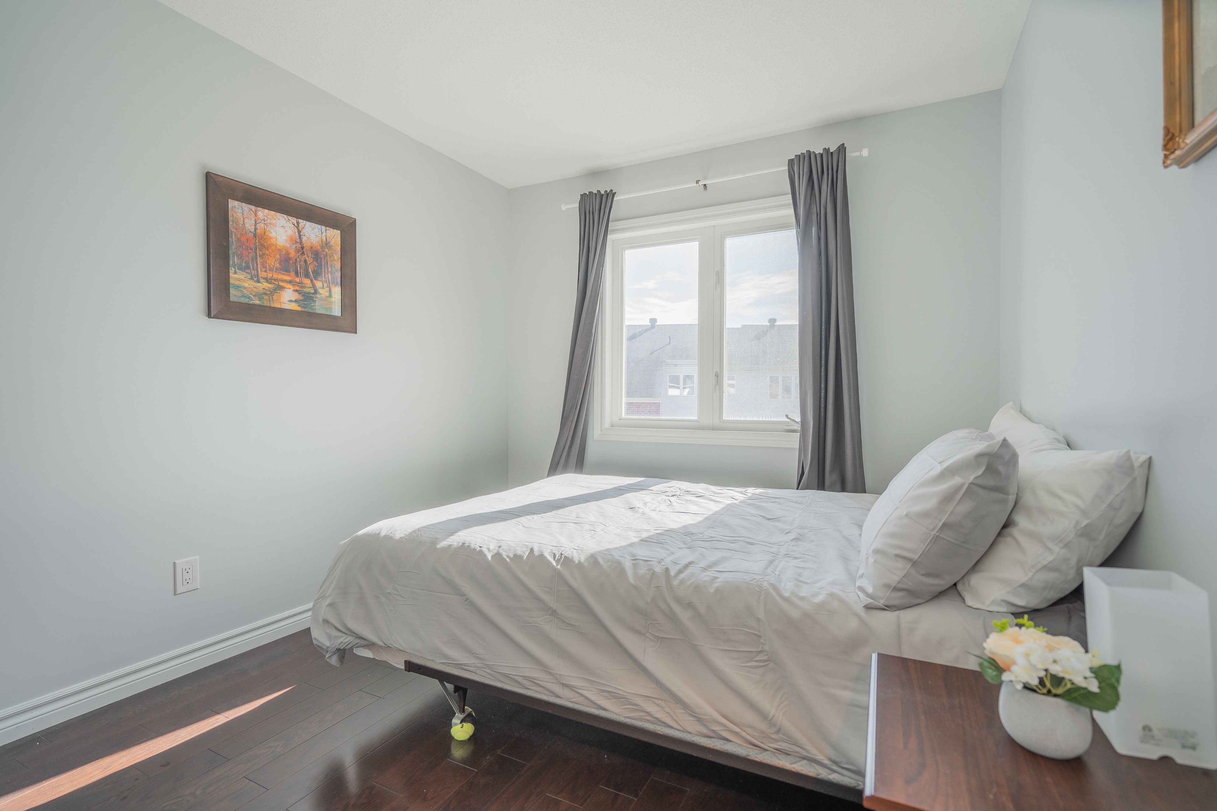 这座 2 卧, 1书房, 2.5卫 的联排别墅靠近渥太华国际机场,周围环绕着许多景色优美的公园(Grasshopper Hill、Orlando 和 Playfair),非常适合户外活动。附近有不少餐厅。主卧设有步入式衣橱、连接浴室和专用工作区;客房有独立卫浴,入住者可在隔壁书房办公。宽敞的客厅和用餐区以及储藏丰富的厨房。地下室是电视室/小型健身房(瑜伽垫和壶铃),非常适合放松/锻炼。三个停车位,一个车库位和两个车道位。
