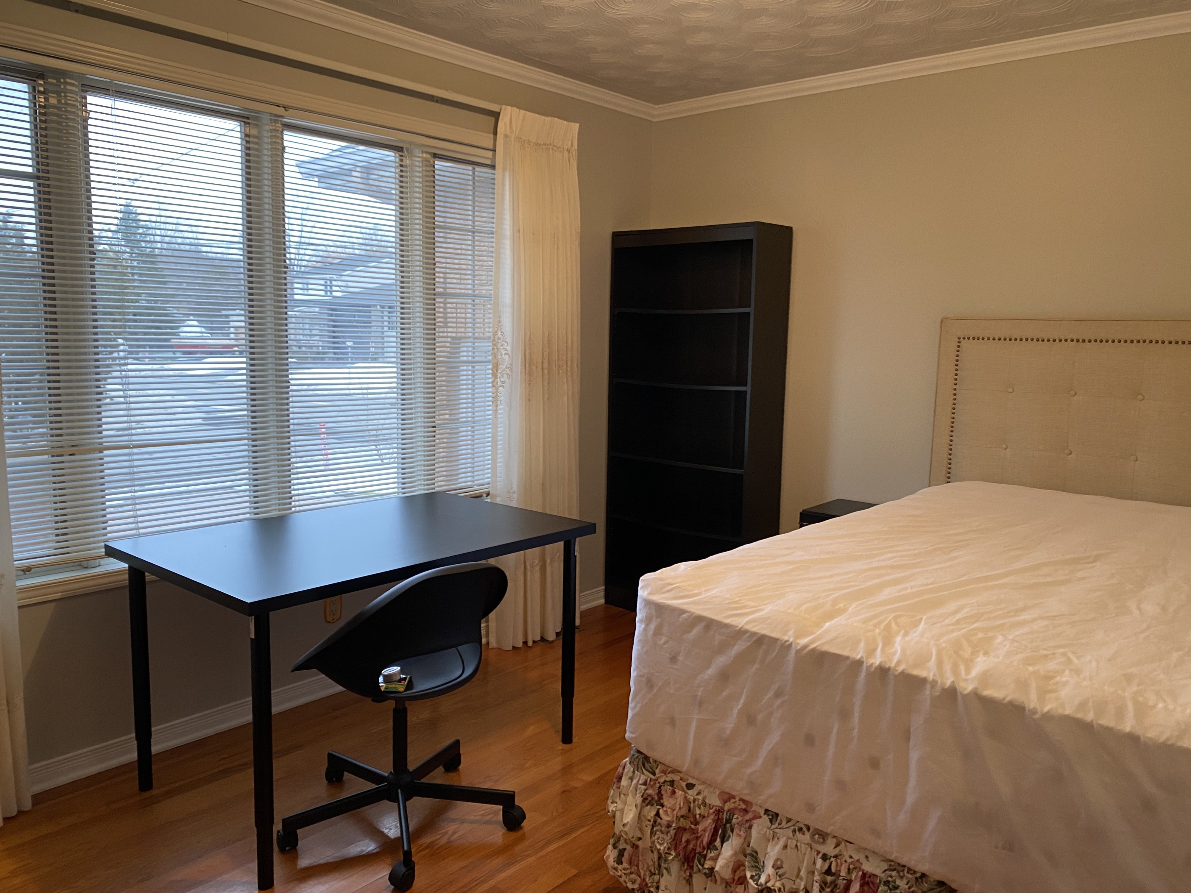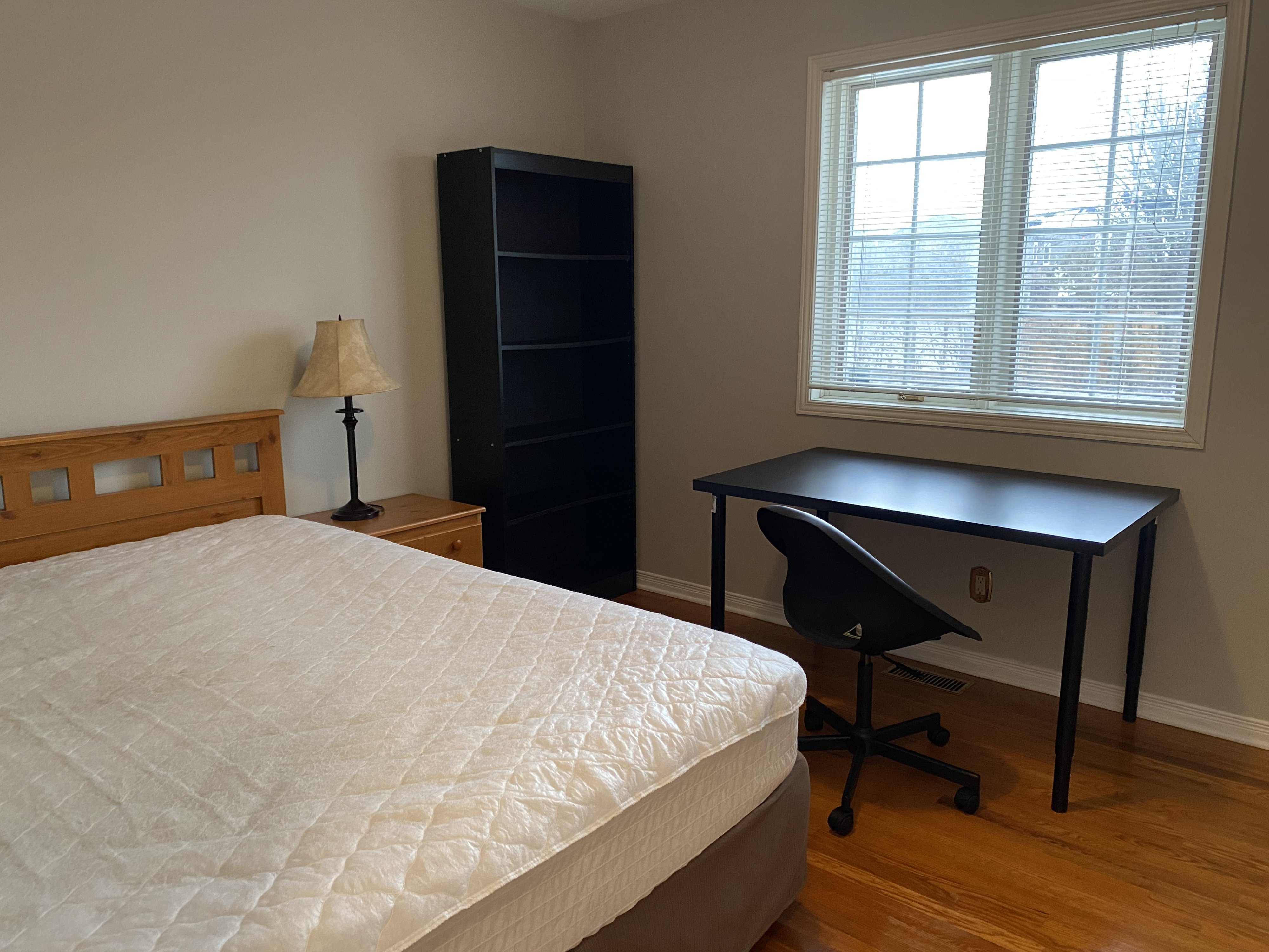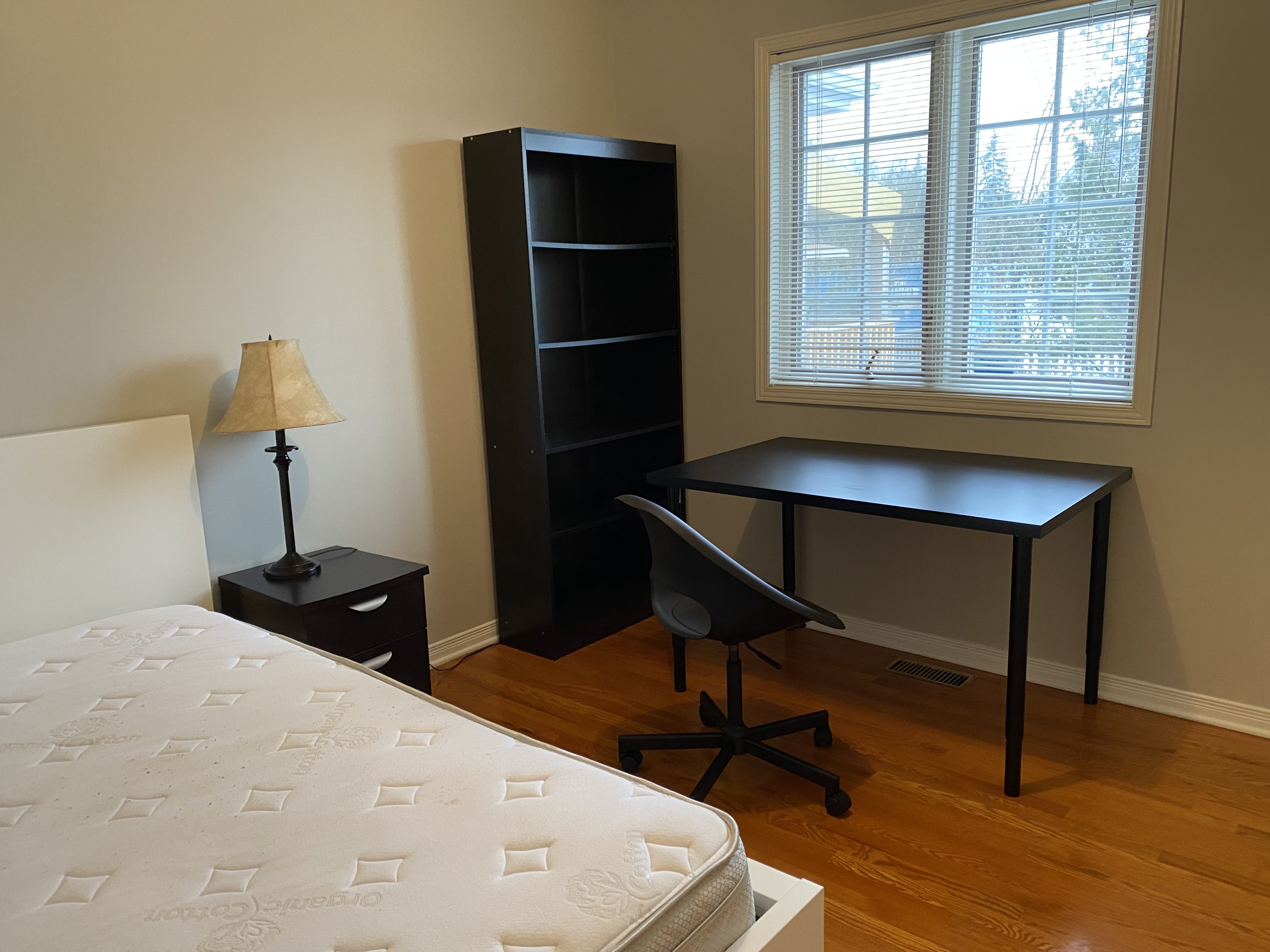 出租的房子:四个卧室(两个卫生间),提供床(包括床垫),衣柜,书桌,书架,椅子
