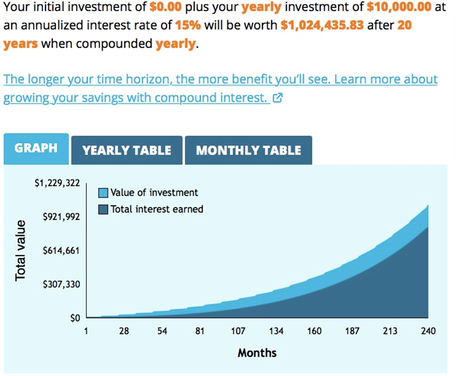 我们再来看看这位朋友在另一个平行时空的例子:他依然每年买1.5万的RRSP,但不是拿来炒股,而是投到标普S&P500指数基金里,按1991年以来的平均年回报11.3%计算,他的复利回报是多少呢?