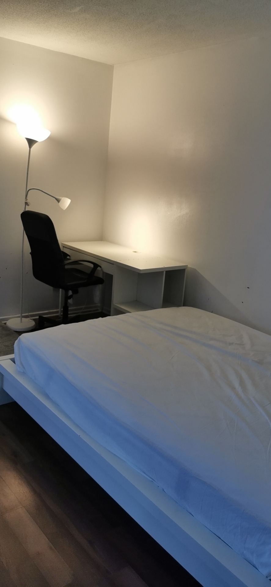 主卧出租,全屋为三个卧室的三层townhouse,客厅和地下室都不住人(地下室很大,可以存放个人物品),包简单家具(书桌,椅子,床垫,灯),三个独立卧室,三个卫生间(其中有两个可以洗澡的独立卫生间),餐厅餐桌,洗衣房洗衣机烘干机齐全,冬天天燃气供暖,夏天全屋空调,并且有一个后院,无需除草,夏天可以BBQ。