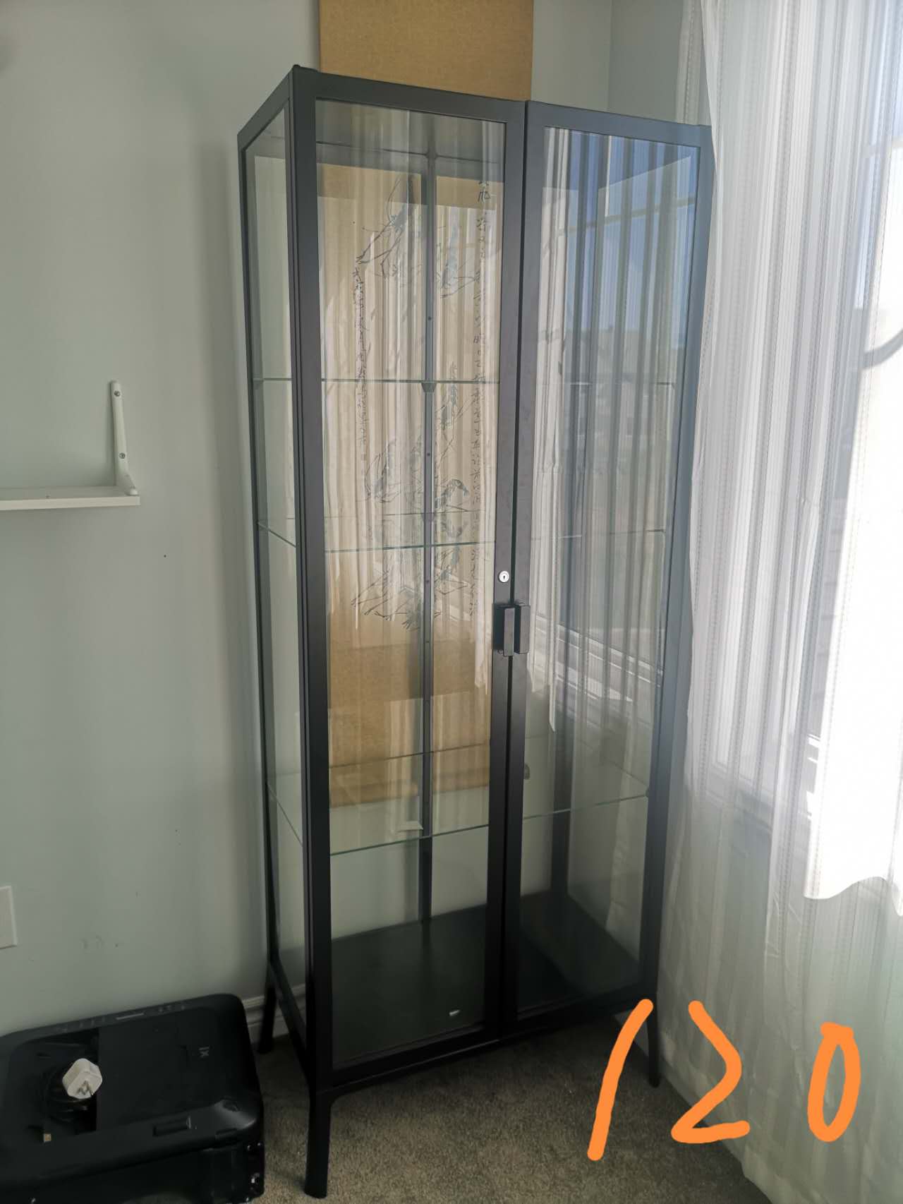 搬家卖闲置物品,五层收纳层架 ,玻璃柜,书柜,边柜,穿衣镜,跑步机等健身用品