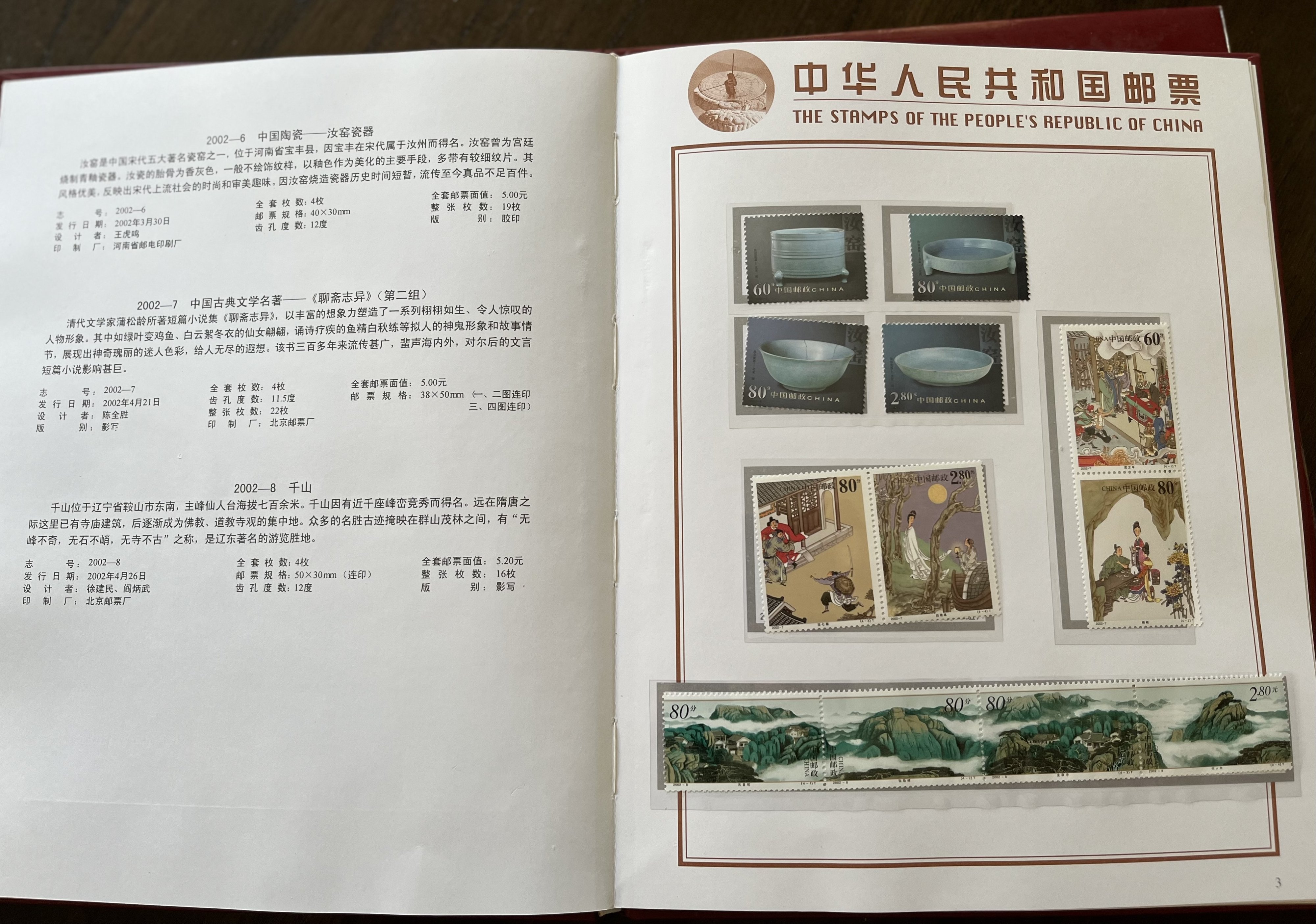 全新邮票,2002整年的邮票(全新未印章),1999年56个民族邮票(全新未印章),30国邮票集(这个是有印章的)
