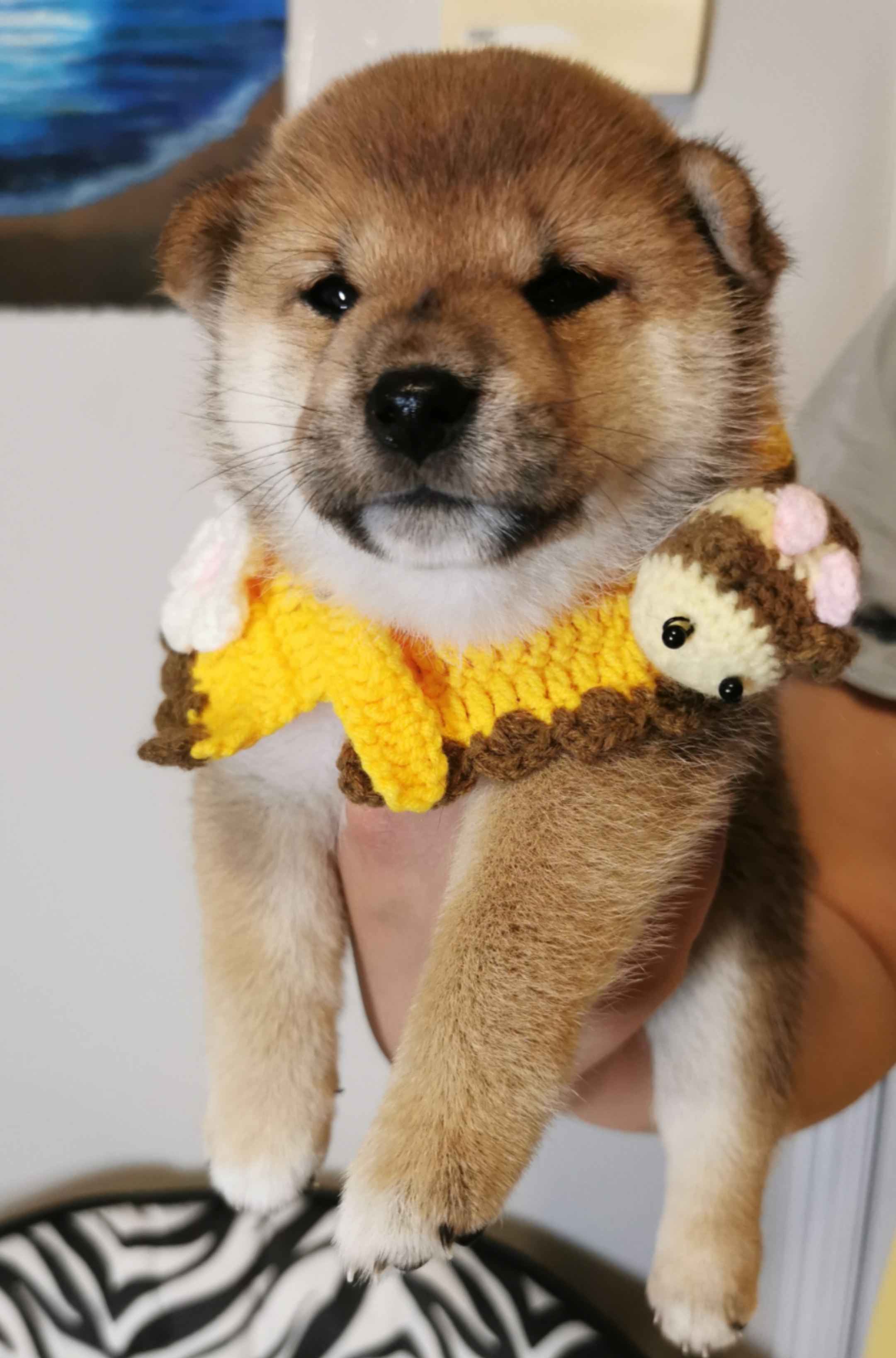 品质有保障,品相胸花毛发骨量一流,性格稳定。长大以后跟爸爸一个颜色,是豆柴哦,会比标准柴和小体柴要小,更加Q萌可爱!包小豆柴宝宝终生售后咨询服务,品质保证![福]