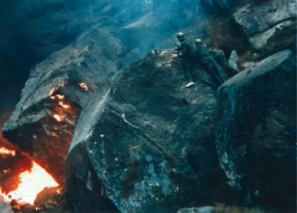 火焰喷射器都无效,最后只有倒汽油,农民下山运来800公斤汽油,矿山送来了管子,侦察兵爬过去向山洞中扔汽油瓶,沿管子倒汽油。