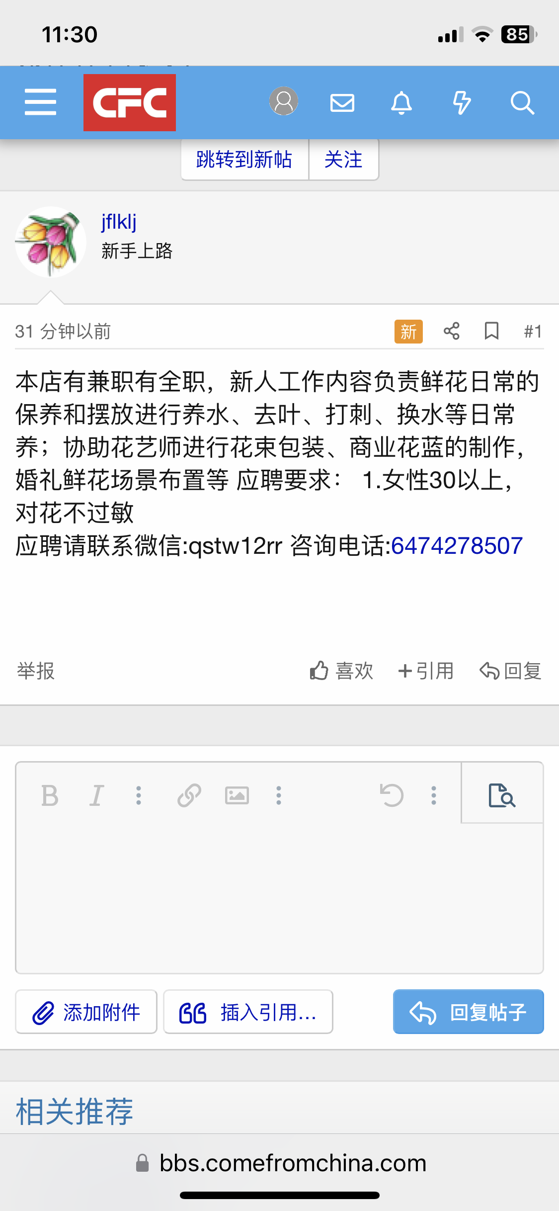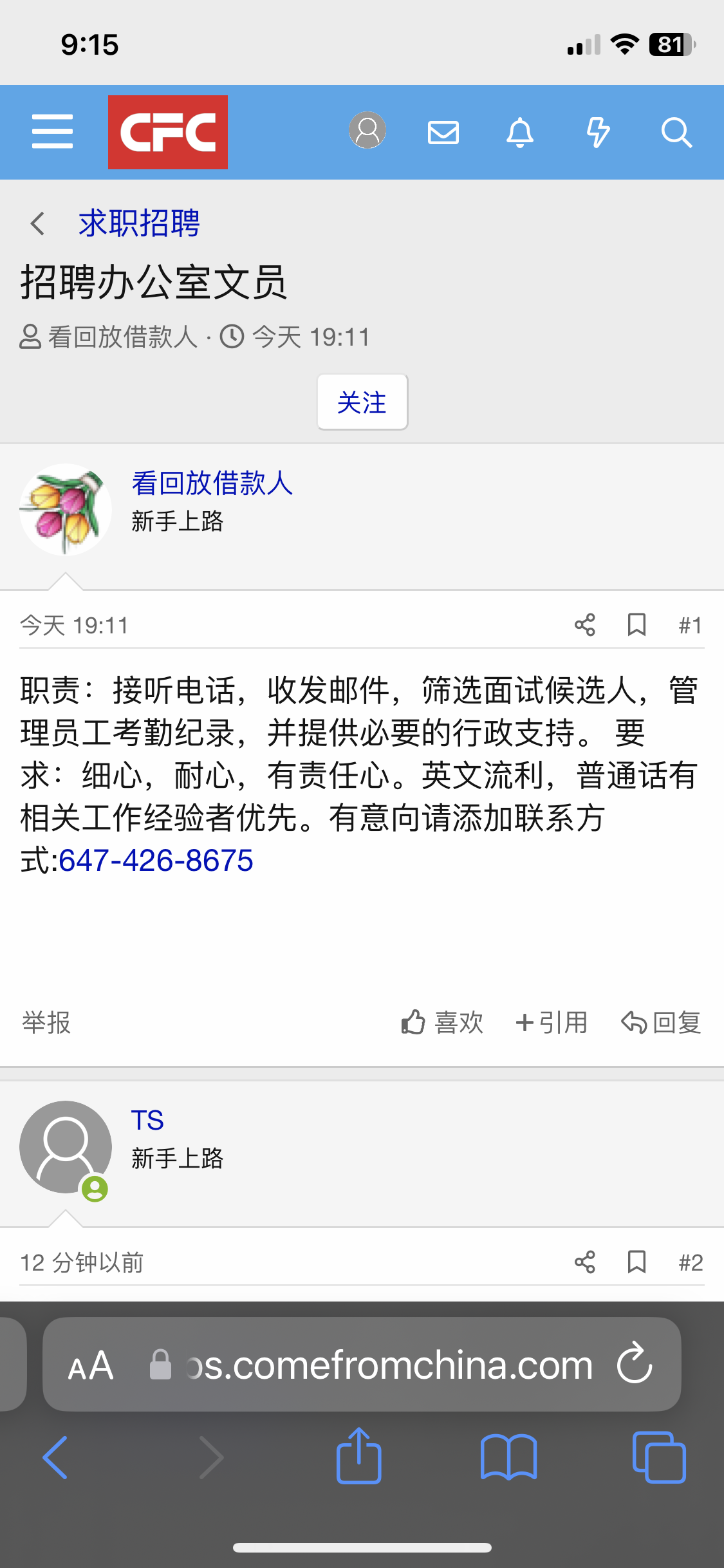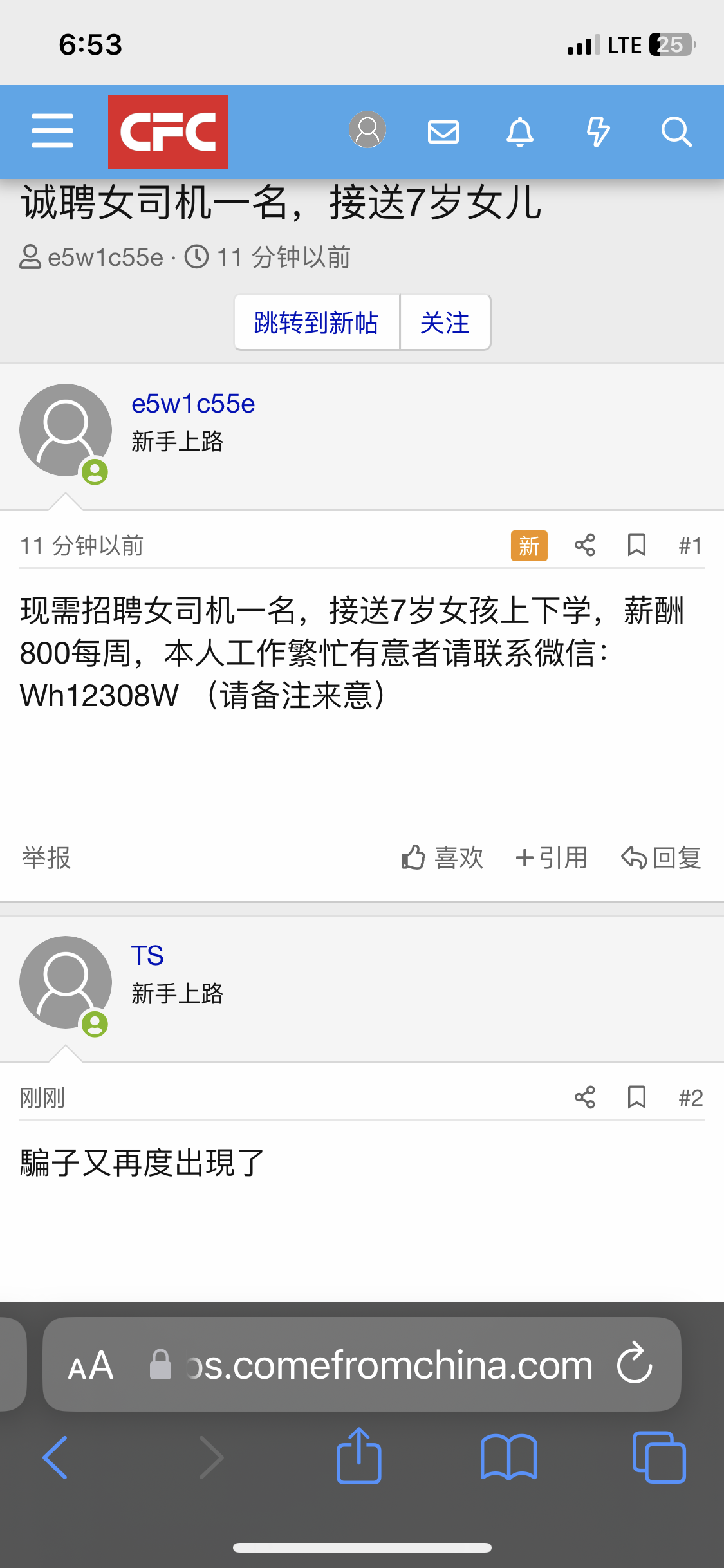 請注意:很多騙子在CFC上不斷發出騙子帖。