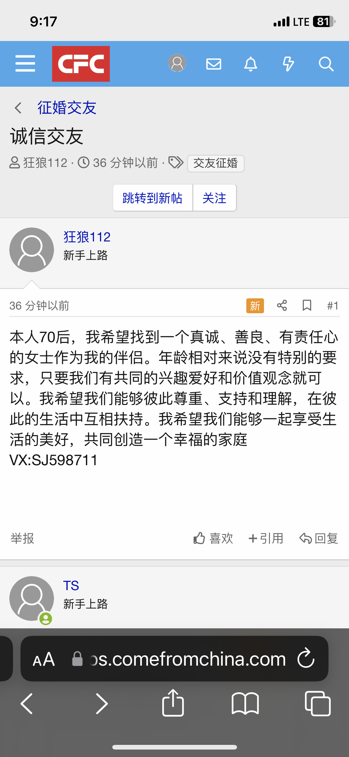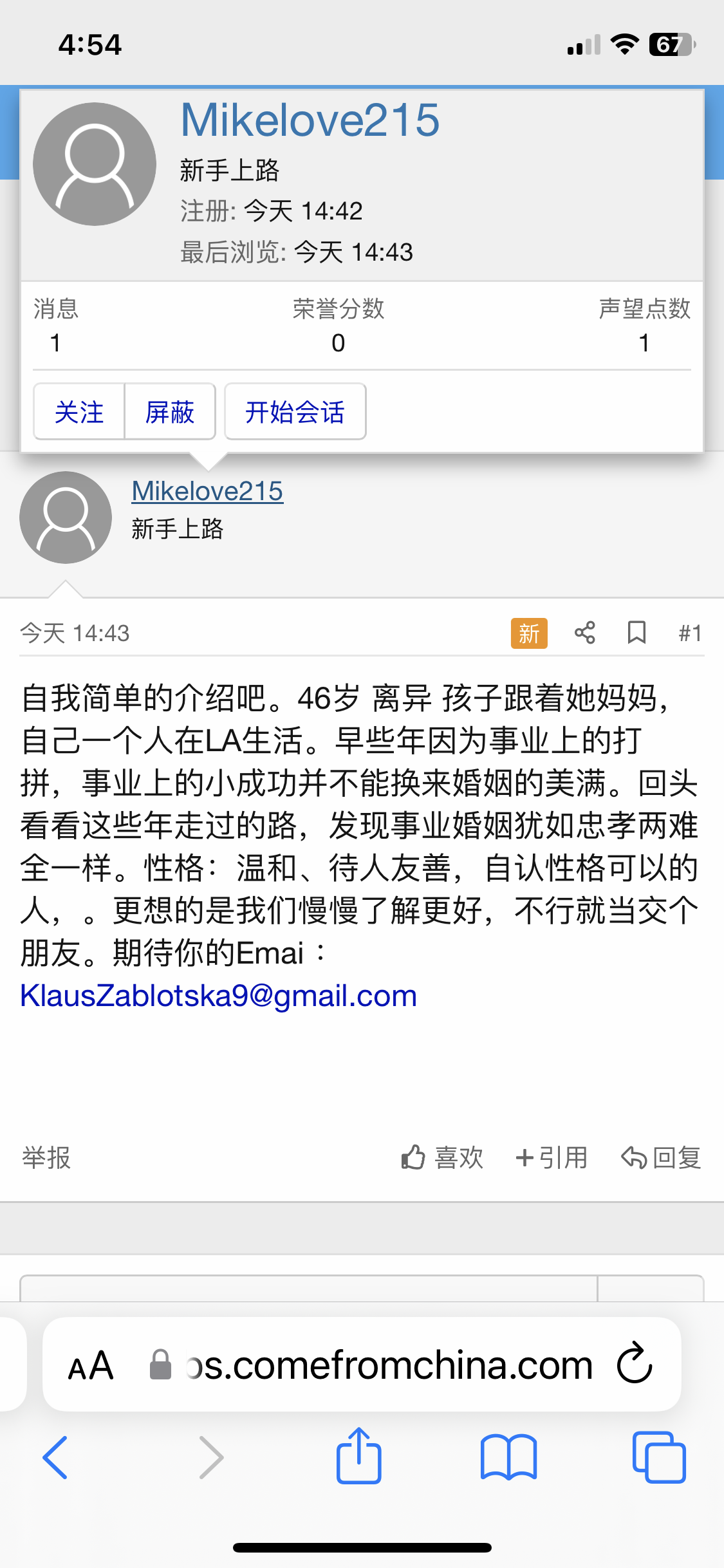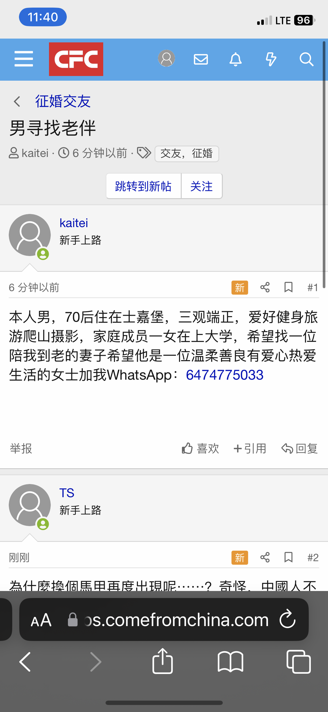 今天2023/12/11晚。同一個騙子連發倆個徵婚交友騙子,第一個给我揭窜後換了一個新馬甲再次出來發另外一個帖子。