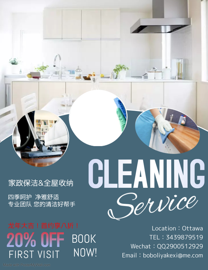 四季呵护 净雅舒适 专业团队 您的家政好帮手 恭祝龙年大吉!首约享八折哦! Location:Ottawa TEL:3439879519 Wechat:QQ2900512929 Email:boboliyakexi@me.com