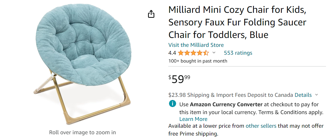 美国亚马逊买的,送货+税后超100了(加拿大更贵) 买的时候没仔细看,不知道是儿童的,懒得退货 全新没用过,只卖40,自取 微信:nie930701 短信:613-869-3493 地址:K2B 5K8 附近