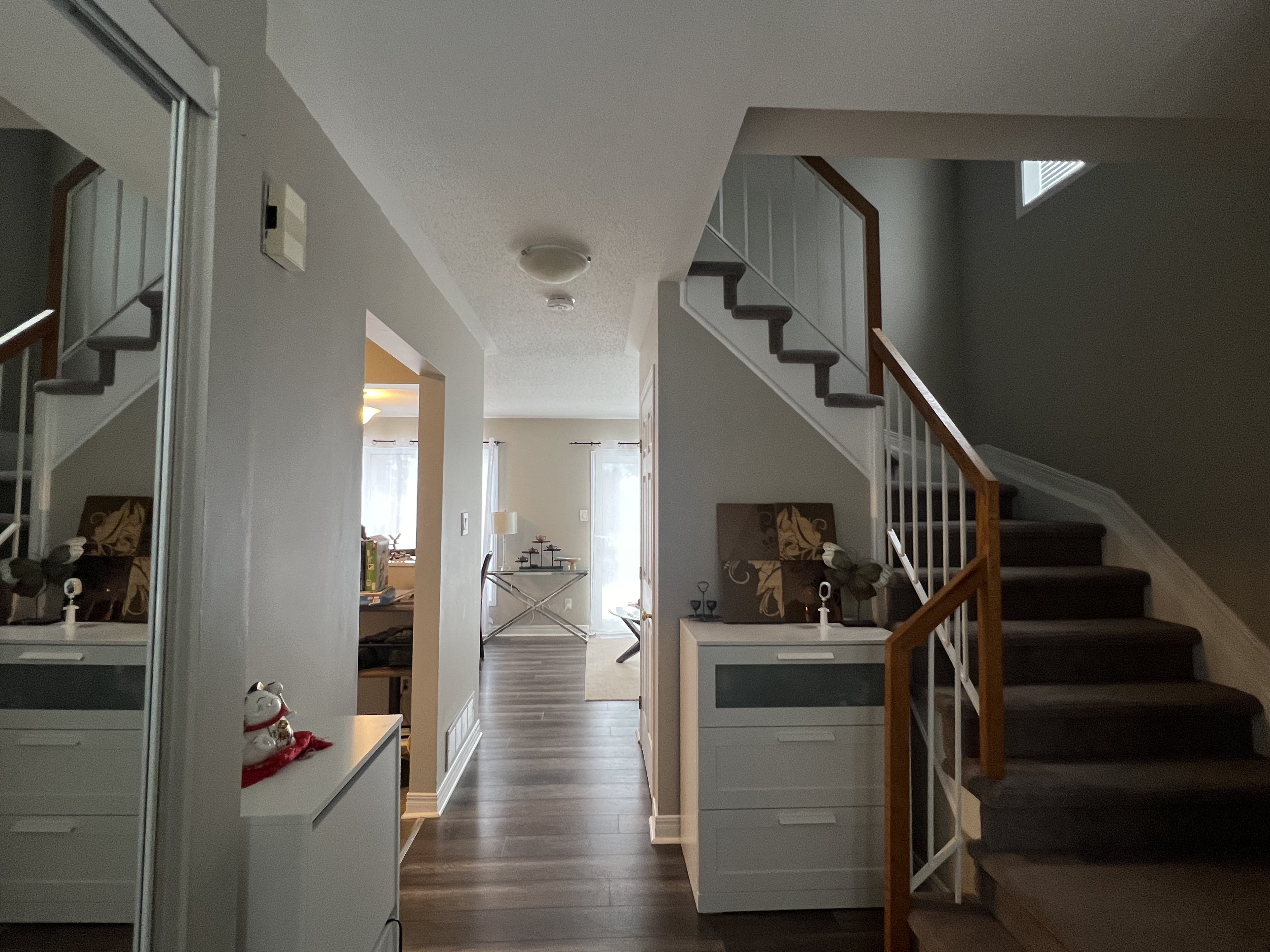 两层加地下室,3卧,2卫,配有一个室内车库和三个室外车位。屋内有中央空调和取暖。后院花园后院很大且没有邻居,有围栏围起来。可以尽情享受家庭的夏日时光。