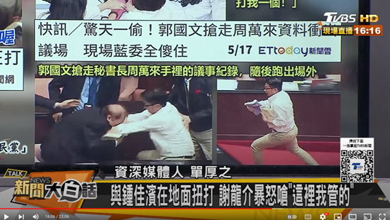 dreamland 说: 年轻的民进党男议员冲撞70岁的国民党议员,从他手中抢过议事日程,夺路狂奔。 浏览附件1140753 点击展开... no, the older one was not a legislator, but an official of the chamber