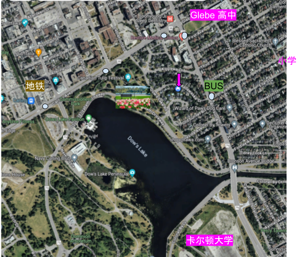 坐落在Dows lake高档社区中间,郁金香公园旁, Dows lake湖畔, 运河沿岸.
