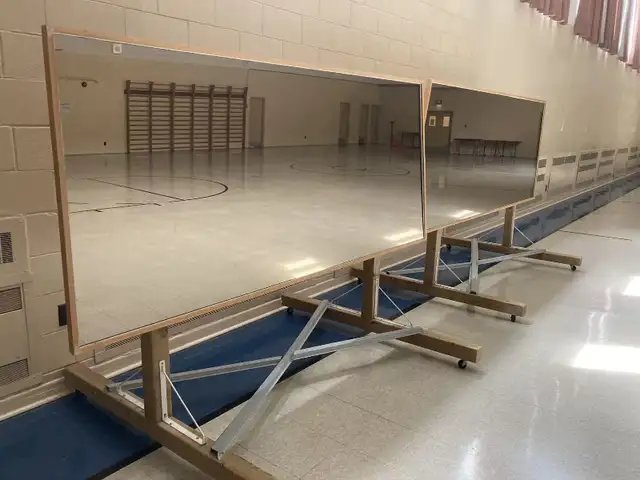 这些无框无轮的大镜子是从学芭蕾和体操的健身房墙上取下来的,也可用于装修家庭地下室的健身房,两个尺寸: