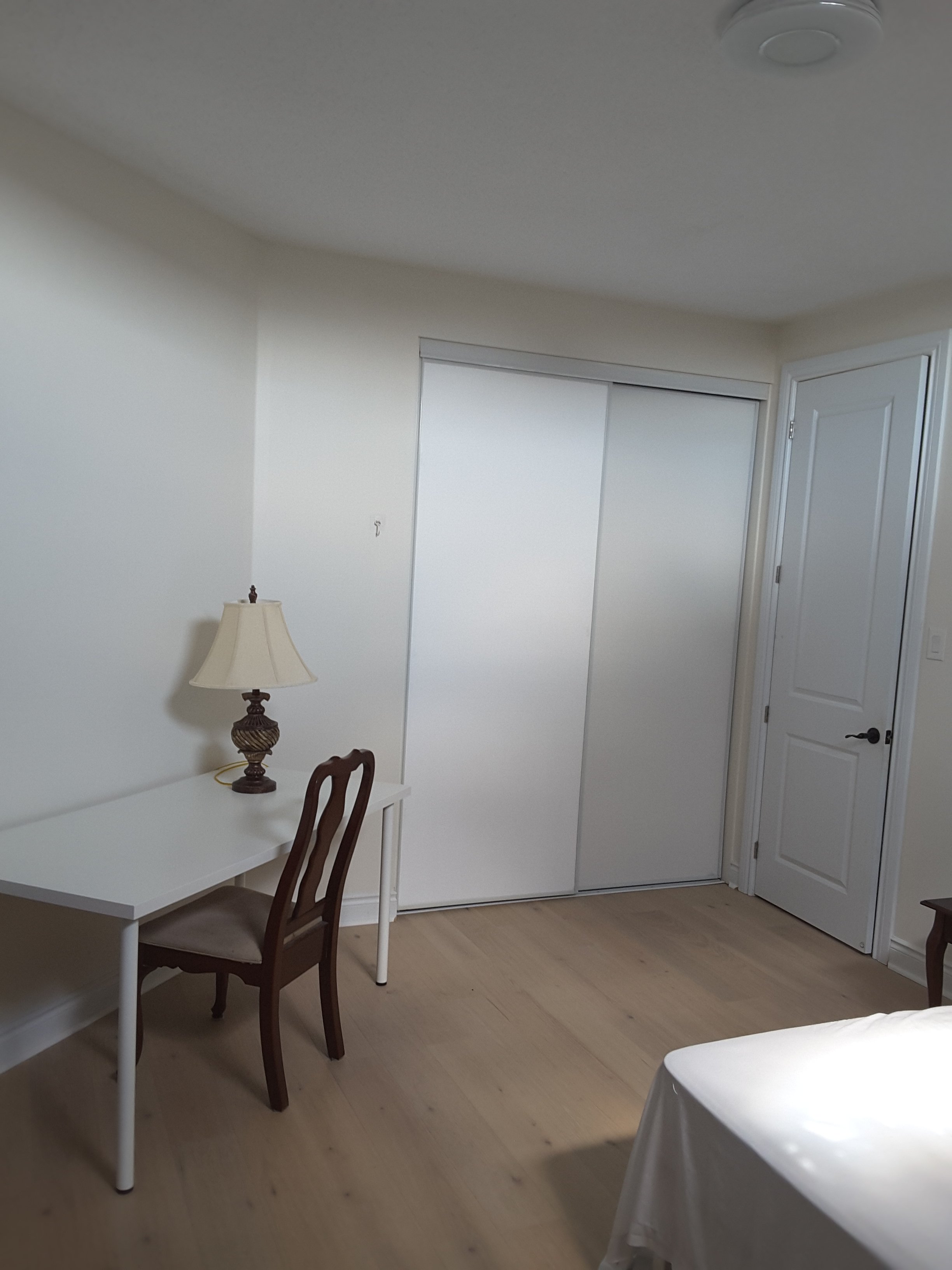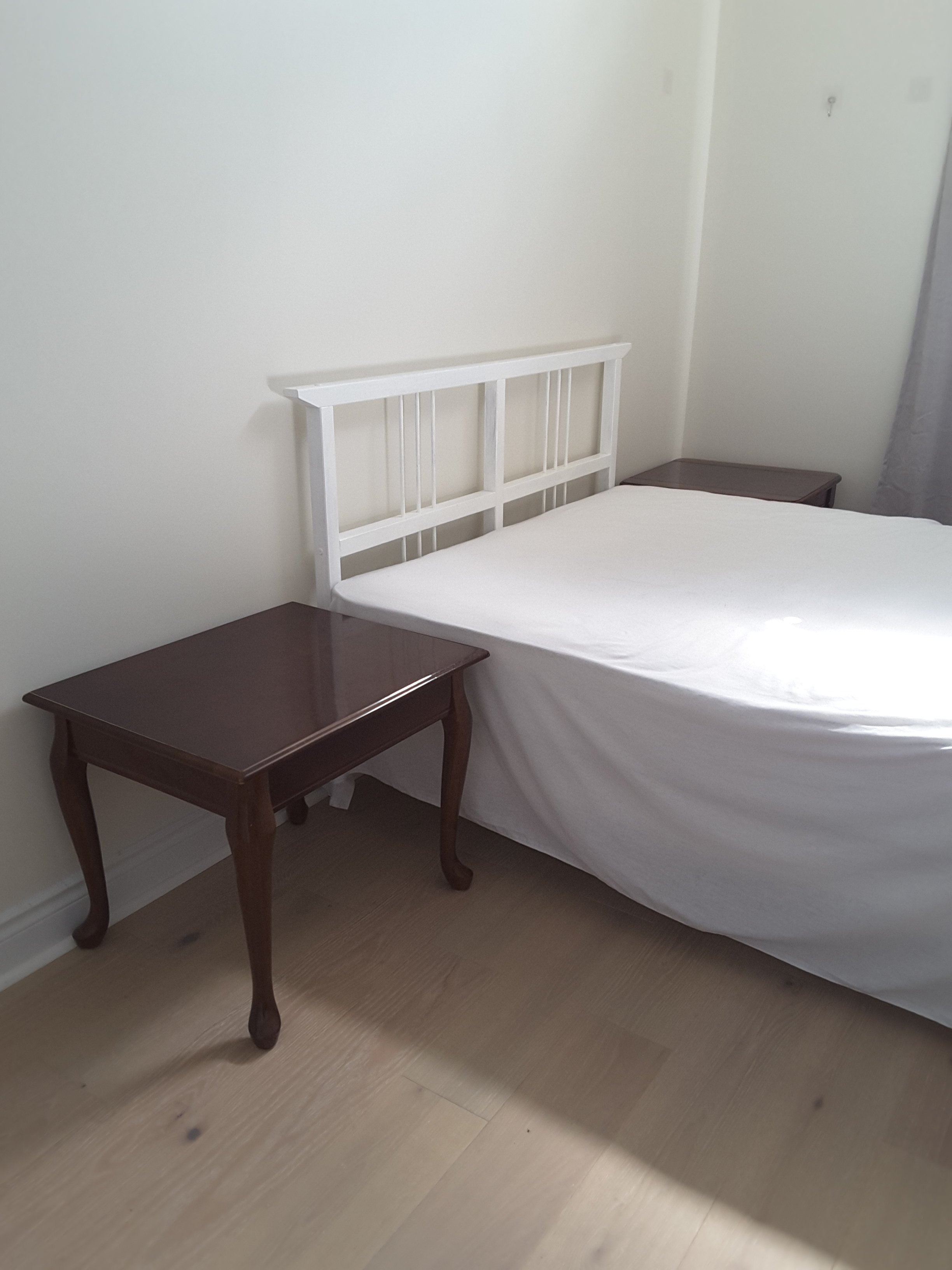 有双人床, 2个床头柜, 一个大壁柜。大桌子一张。椅子把 ,台灯一个。