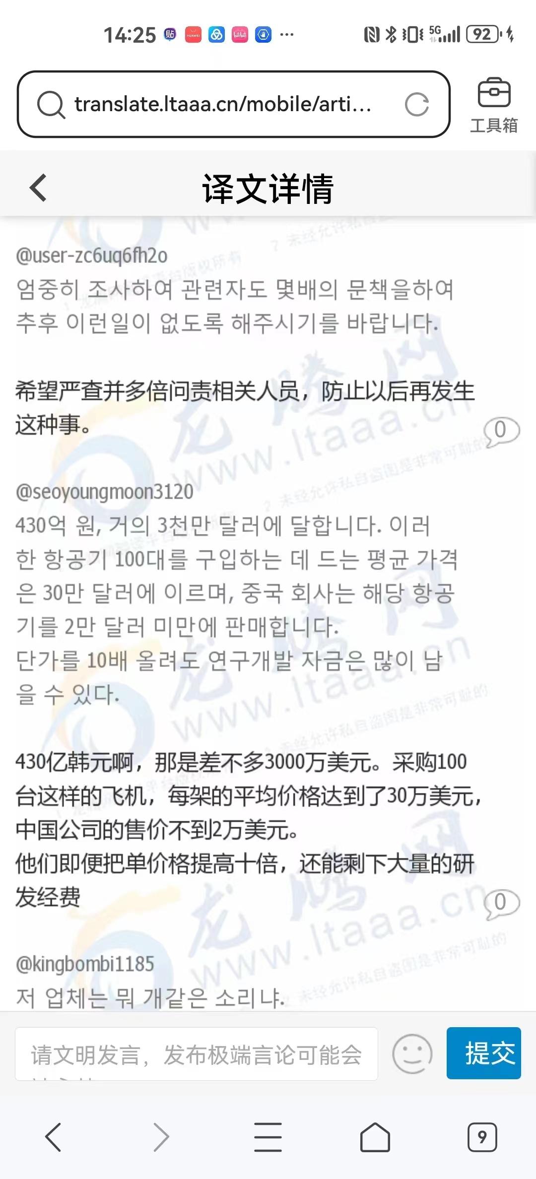 韩国军用无人机丑闻调查结果出炉,价值430亿韩元(2.3亿元人民币)的100架军用无人机被确认为中国深圳制造。涉事公司将国防采购文档原样发给了中国公司,韩国舆论再次哗然