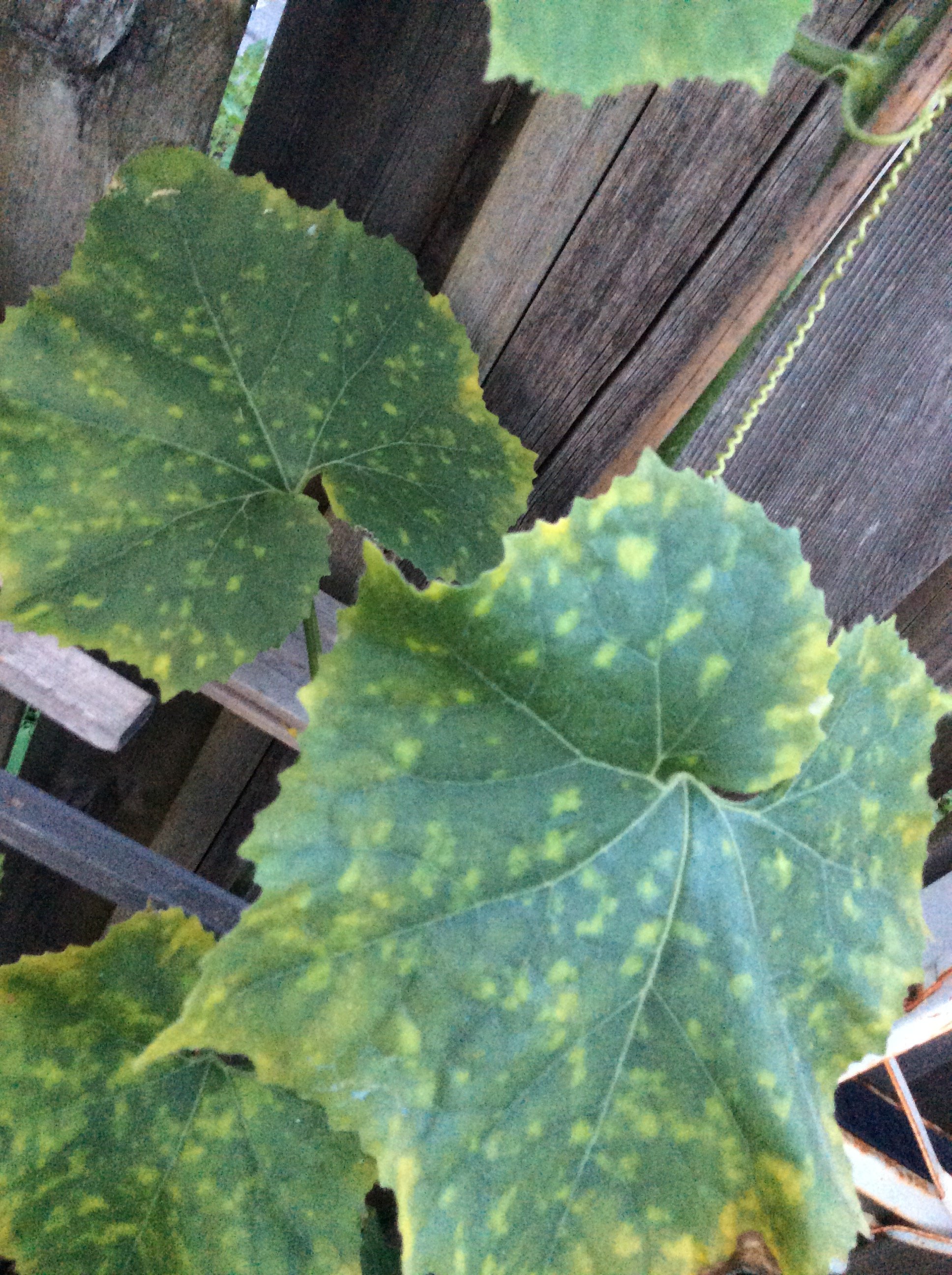 我种的黄瓜、冬瓜、豆角这三种作物叶子上都出现了黄色的凸起的斑点,尤其是在靠近根部的叶片较严重,上面的叶片还好,我拍了照片请朋友们看看,这是什么虫害,应当用哪种药物救治呢?希望咱们渥太华本地有售最好。谢谢大家!