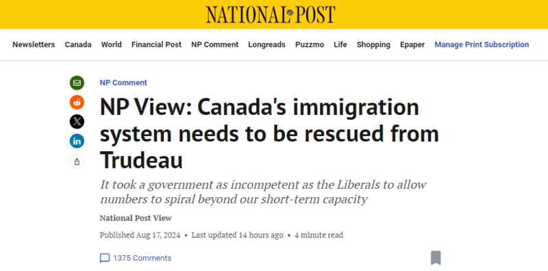 在杜鲁多的九年任期内,移民制度已经变得高度紧张,并且有可能让加拿大人大吃一惊。这将是一场灾难:这个国家需要人口增长,但如果持续的人口过剩导致民众对新移民产生反感,那么这个国家就无法成功。