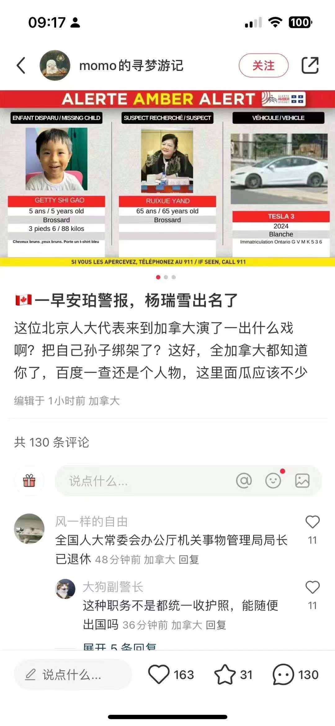 Maple Zhang 资深人士 注册 2004-04-26 消息 2,166 荣誉分数 863 声望点数 223 2024-08-27 #6 5岁男孩儿,估计是父母离婚,孩子判给一方了。奶奶或者外婆不服,就把孙子给带走了