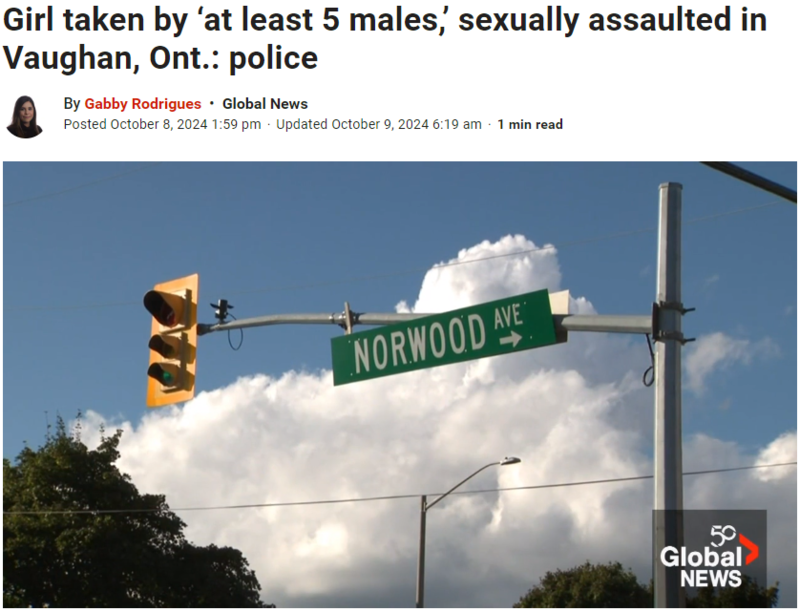 来源:Girl taken by ‘at least 5 males,’ sexually assaulted in Vaughan, Ont.: police - Toronto | Globalnews.ca