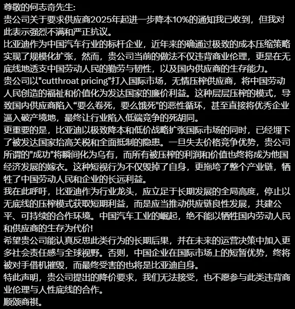 往死里卷,byd要求供应商降价10%