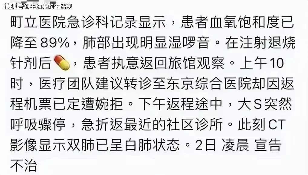 T tt8966 本站元老 注册 2011-08-05 消息 6,629 荣誉分数 2,165 声望点数 373 2025-02-05 #67 eclipse 说: 血氧89了还离开医院,大S真是作死啊。她妈,她老公,她妹小S,全是作死的。 浏览附件1166996 点击展开... 好像一意要离开,最后医院让签了责任书才离开的