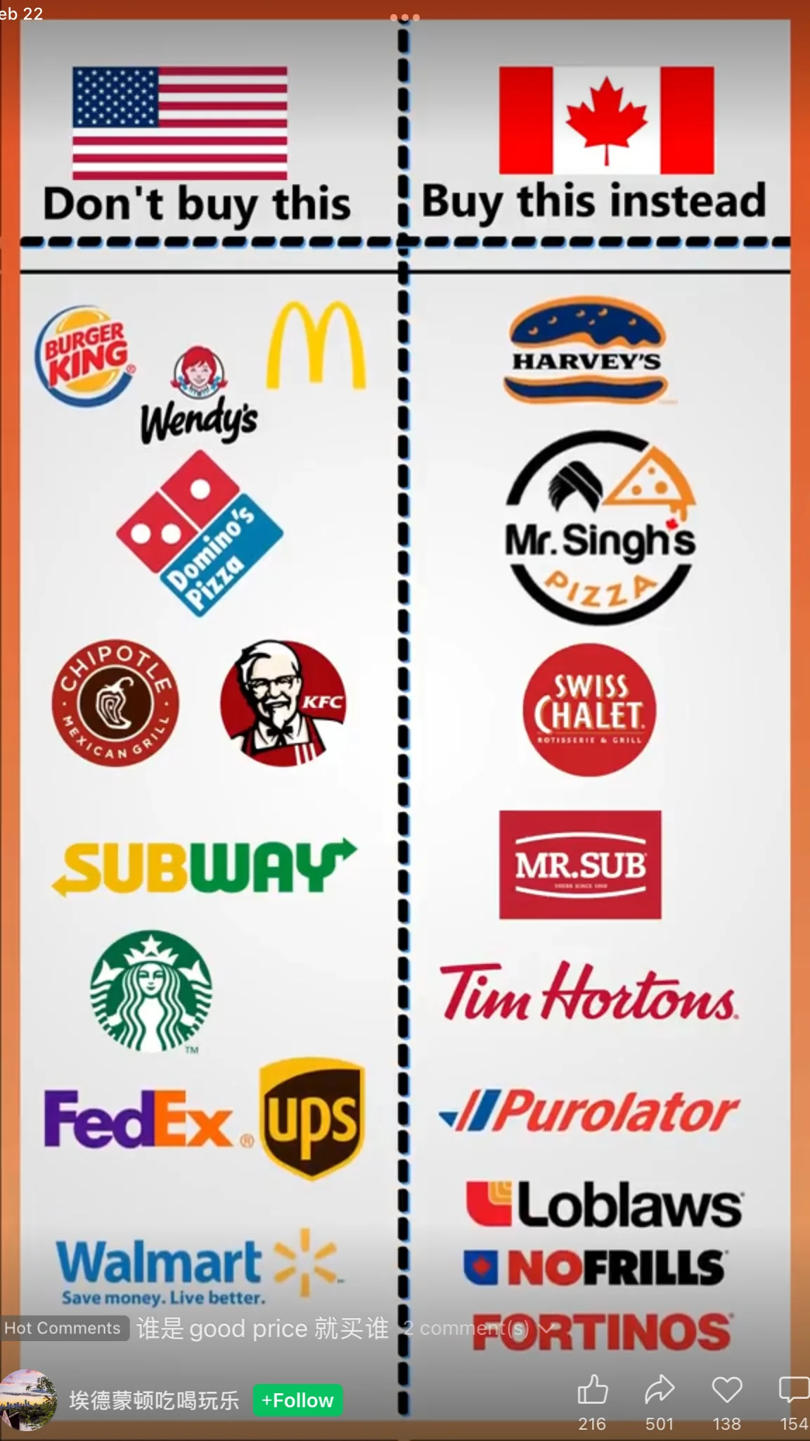 可是对于抵制美国拥有的商店咖啡店,我不太认同,这些店雇佣当地人,是加拿大欢迎过来开店的,不是对加拿大有宜吗?我虽然不太相信这种抵制会造成多大的影响,万一真有严重的影响,杀敌1000自损800还是1200?