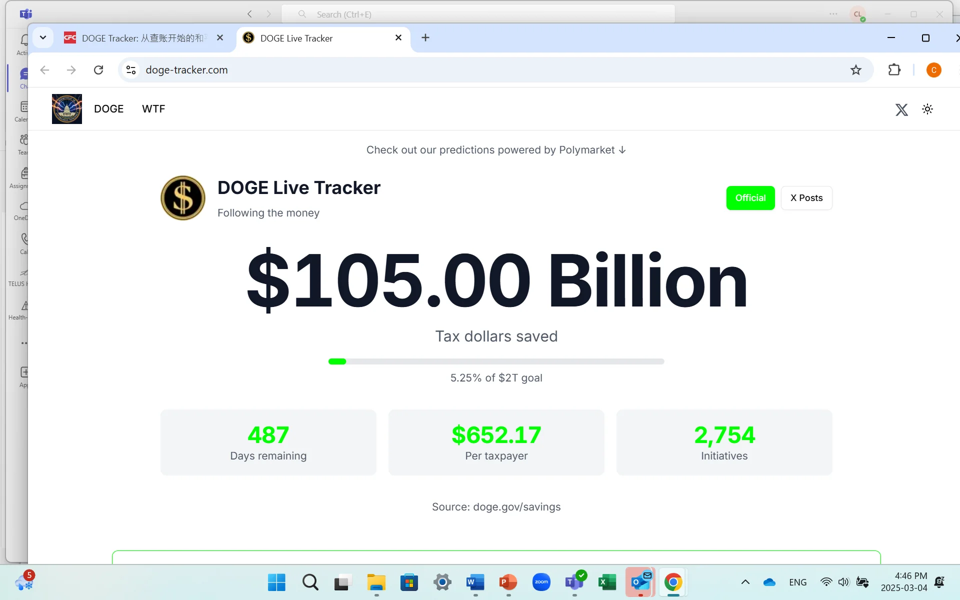 CHRIS88 说: https://twitter.com/i/web/status/1897009191308624001View: https://x.com/DOGE/status/1897009191308624001 至今节省1050亿美元. 浏览附件1169233 点击展开... 这里包括那个8-million合同,elon虚报成8-billion?