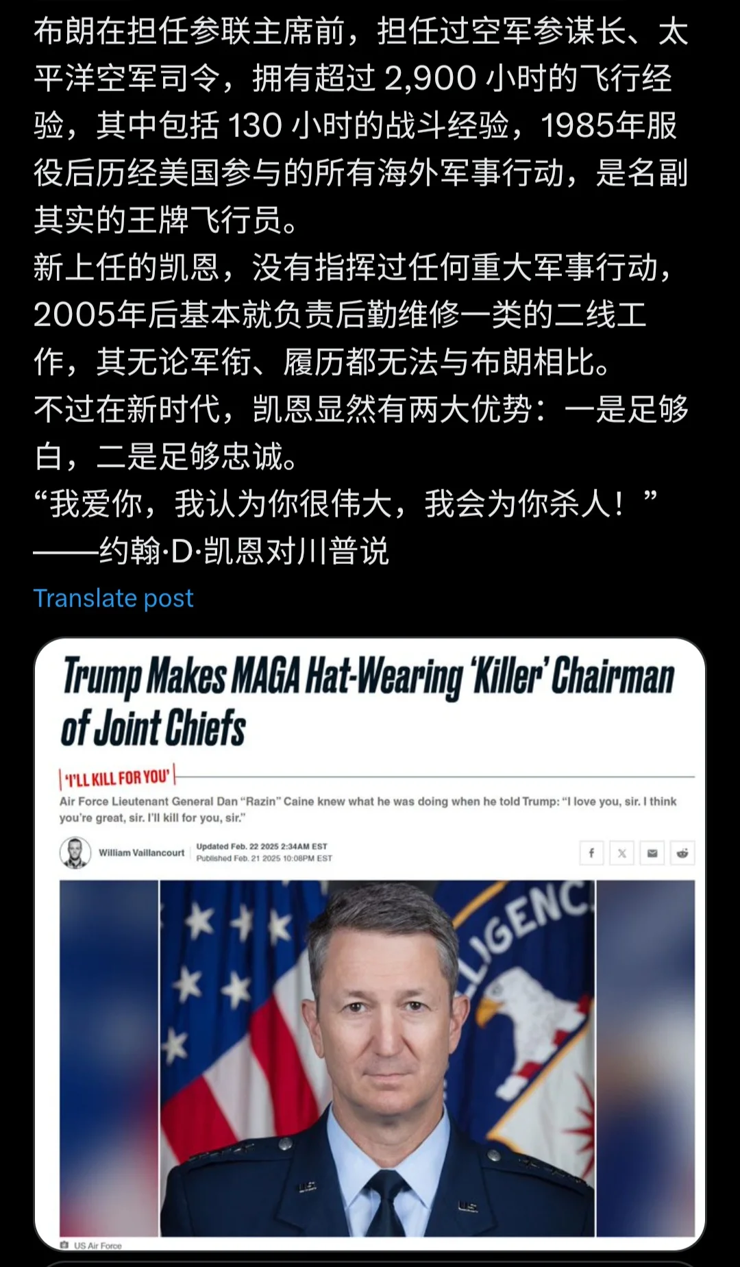 Z ztbll 本站元老 注册 2014-04-08 消息 15,029 荣誉分数 4,084 声望点数 373 2025-02-22 #2 当年老川要打isis,咨询了几个老军头,说困难很大,至少要3年时间。后来去一线视察,顺口问了凯恩,对方说几个星期就差不多,随后老川就让他带队去的打isis了