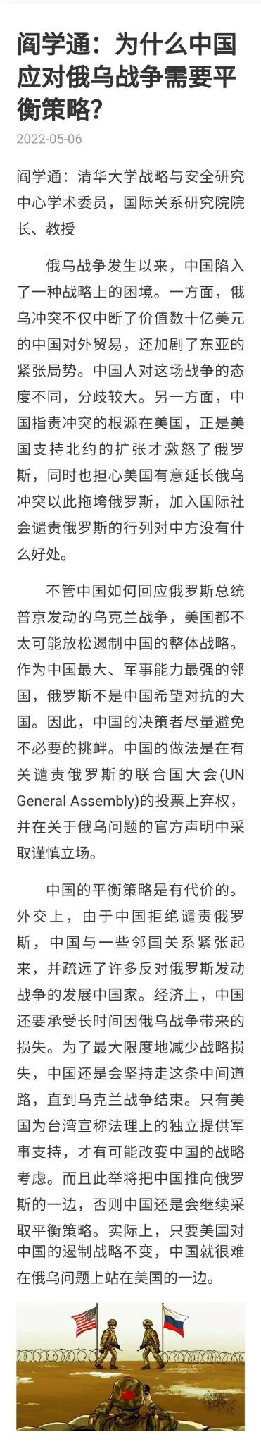 这曾让西方国家极为不满、强行指证中国“暗挺”俄罗斯;中国内部也因这场战争而在舆论场上严重分化,“挺乌”“挺俄”的观点与立场互不相让,不少中国人认为中国没有“站在正义立场”去反对俄罗斯,这是“与人类文明主流”为敌。这些声浪直到现在仍未停息。