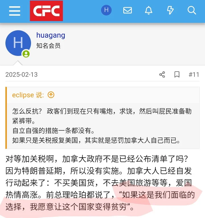 对等加关税是必须的,报复美国关税是必须的,立刻调整加拿大的经济政策更是必须的,立刻停止碳税更是必须的,立刻给企业减税也是必须的。自强是更重要的,这样贫穷是暂时的,重新强大才有希望。