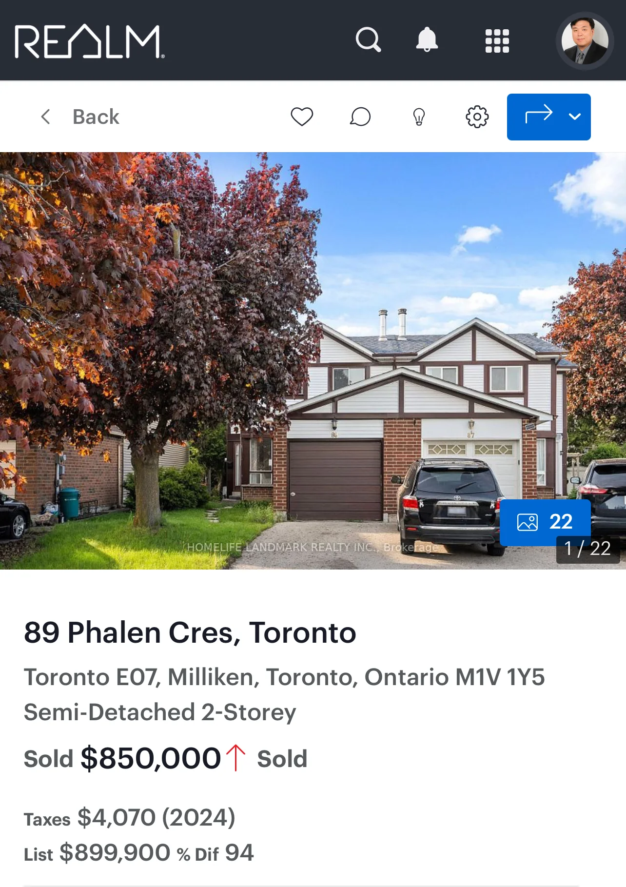 今天给大家带来的是一套位于万锦市Middlefield 社区的单车房Link 屋, 地面以上与邻居完全分开。距离 McCowan Rd与 Steeles Ave和公共交通系统 仅数步之遥。配有三个停车位,地下室完成装修,配有娱乐室和洗手间。楼上设有 3 间卧室。拎包即可入住。。 这个房子的最新成交价仅83.5万!多伦多投资物业,生意请联系Frank Yang 647-669-4938!