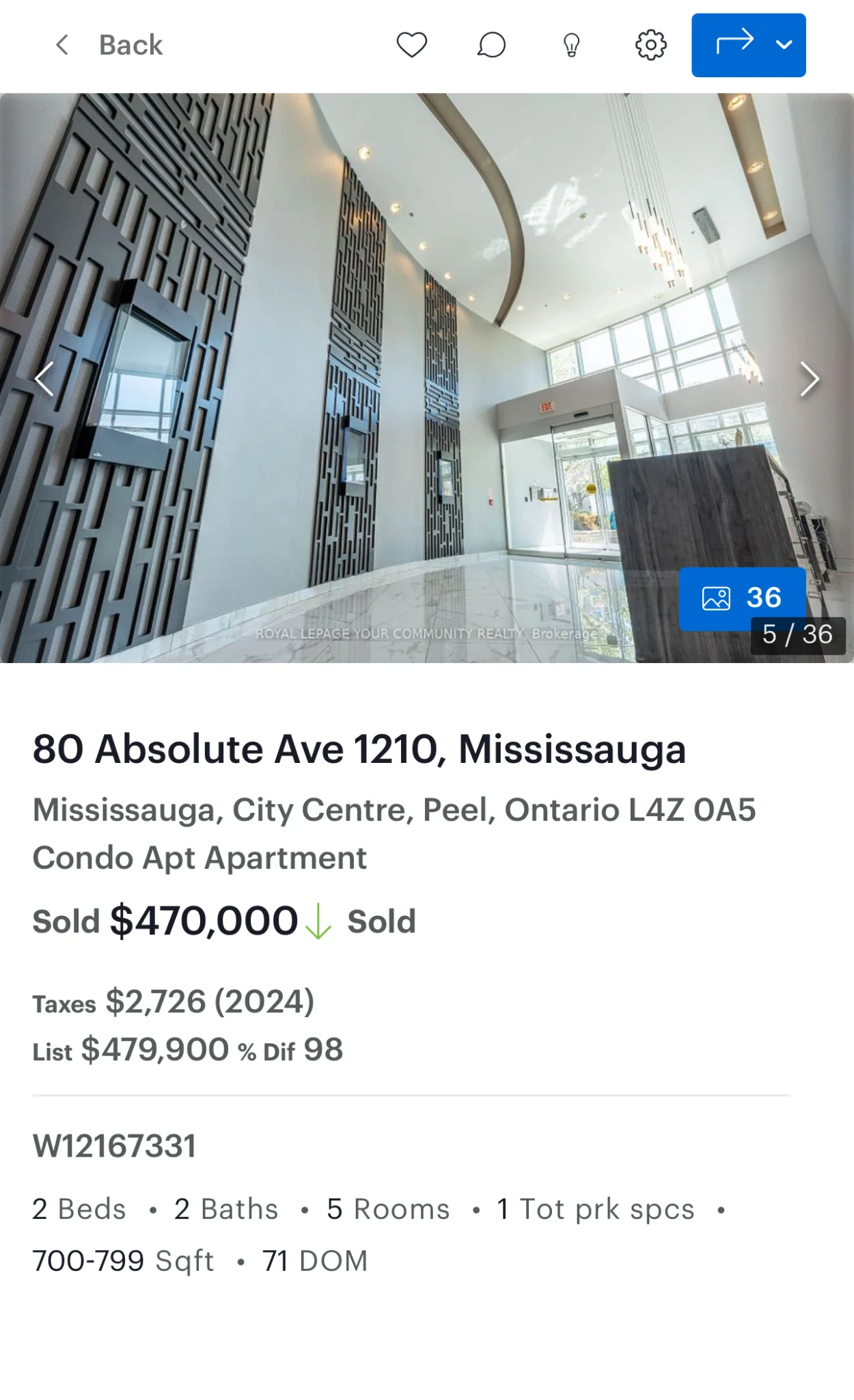 今天给大家带来的是一套位于密西沙加市中心的2房2卫Condo. 包含一车位,一储物间。 室内面积765尺,全屋做了新装修,全新电器,斑马帘,公寓设施齐全,室内,室外泳池,篮球场,桑拿房,壁球场,多功能影院,Party Room. 交通尤其方便,近高速403,401,Qew. 这个房子的最新成交价仅47万.多伦多投资物业,生意请联系Frank Yang 647-669-4938!