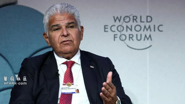 2025年1月22日,巴拿马总统穆利诺(José Raúl Mulino)在瑞士达沃斯(Davos)出席第55届世界经济论坛 (World Economic Forum, WEF) 年度会议。(Reuters)