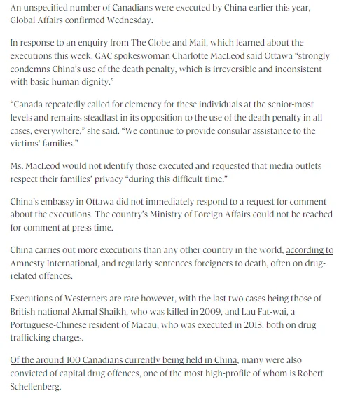 Both Mélanie Joly and Justin Trudeau had intervened in their cases in recent months, requesting leniency to avert the executions