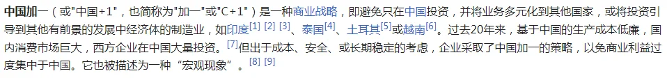中国+1 的意思是产业链中技术含量高附加值高的留在中国。和谁到海外开厂没关系。只要中国工人收入上升,低端产业外溢就是必然的。低端劳动者就业问题只能通过发展服务业来解决的