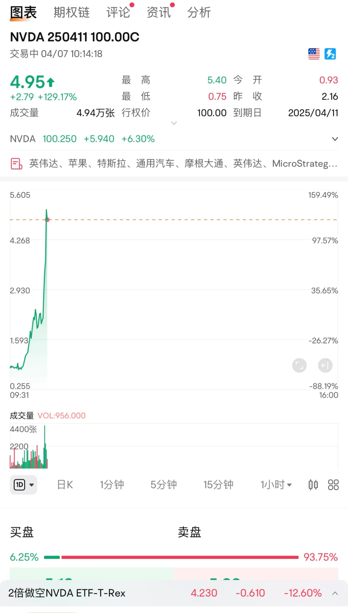 Z zzgf 初级会员 注册 2017-09-26 消息 204 荣誉分数 231 声望点数 53 2025-04-07 #6 别人都看着暴跌、熔断时,你应该果断抄底。 这是我上周五的马前炮,临近收盘时逆市买入的高风险看多品种。我当时判断她今天会看到$3.9。但也怕特朗普多嘴周末发推。风险已经计算好的,即使有重大利空大盘熔断,因有4天时间效应,该CALL也不会清零,不会被强行行权。 有一大票股友,天天盼着暴跌、熔断。真到了暴跌之时却又叶公好龙了,基本都在观望,白白浪费了这个人造熊市的良机。最后,基本上都会是在犹豫、后悔中不得不重新追高。