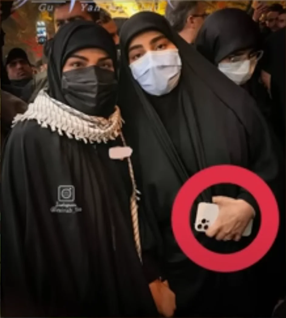 2019-2020年被美军定点削刀炸弹击毙的苏莱曼尼将军的唯一女儿在之后的2022-2023 居然赶时髦使用苹果13手机