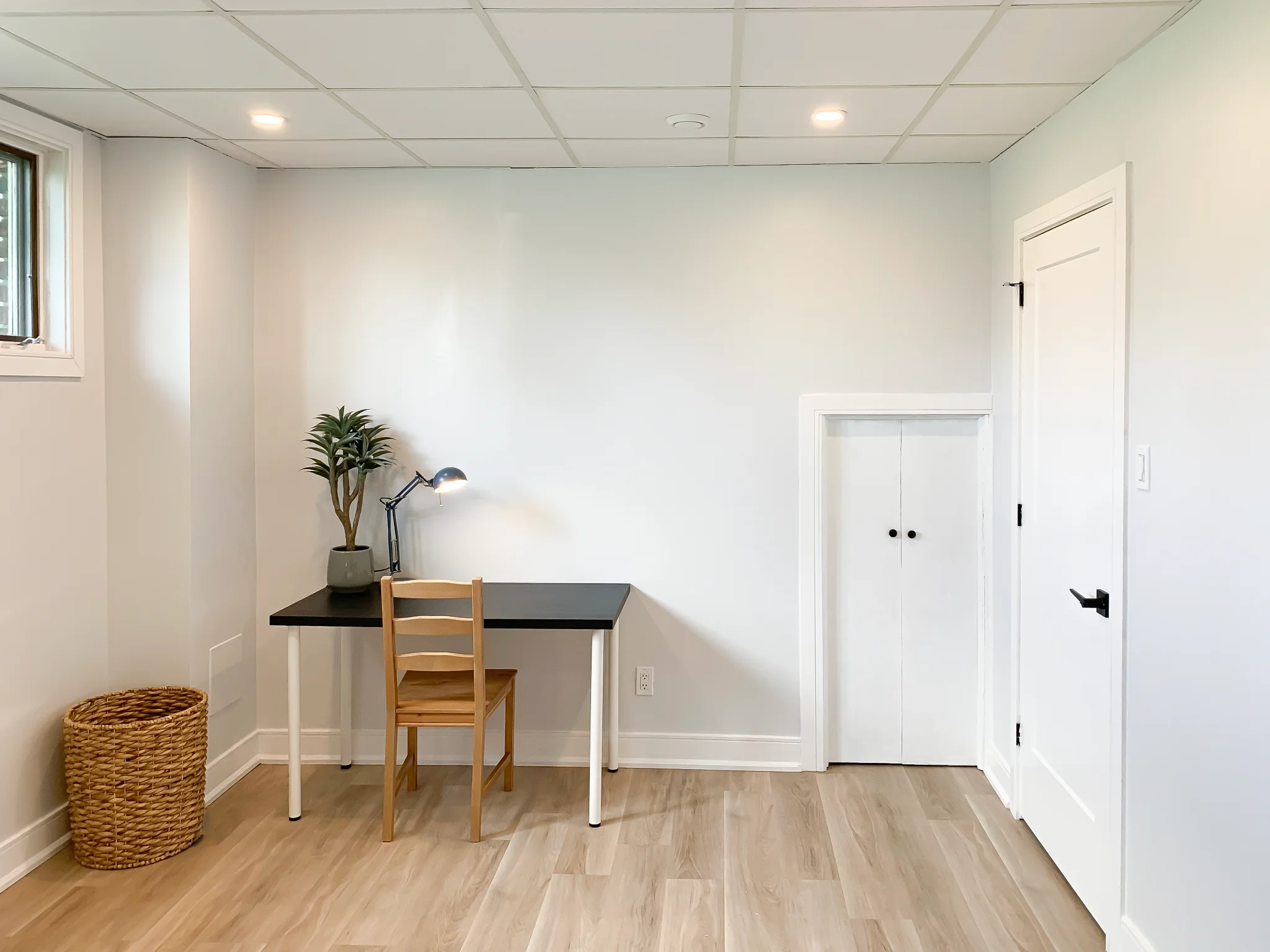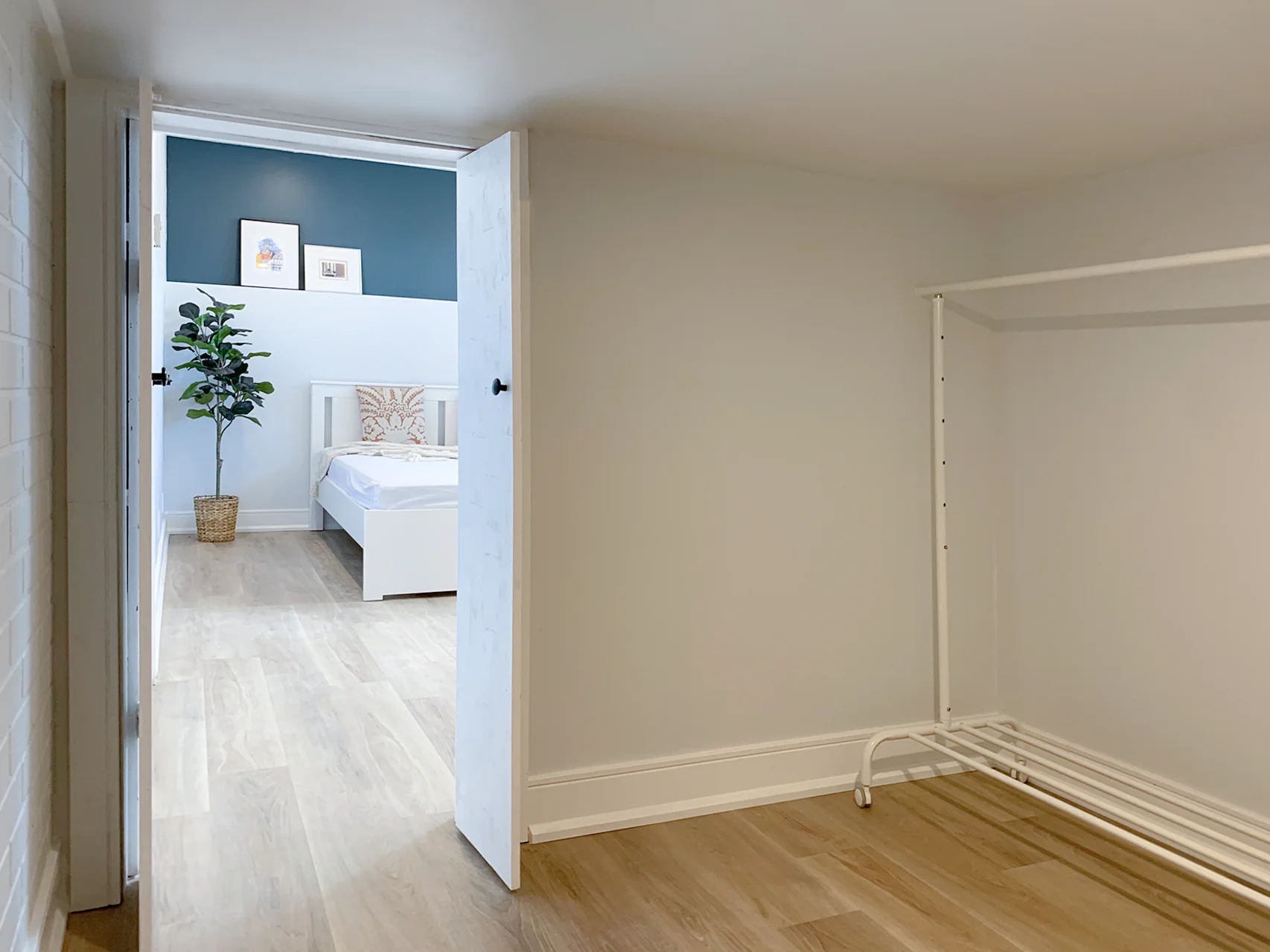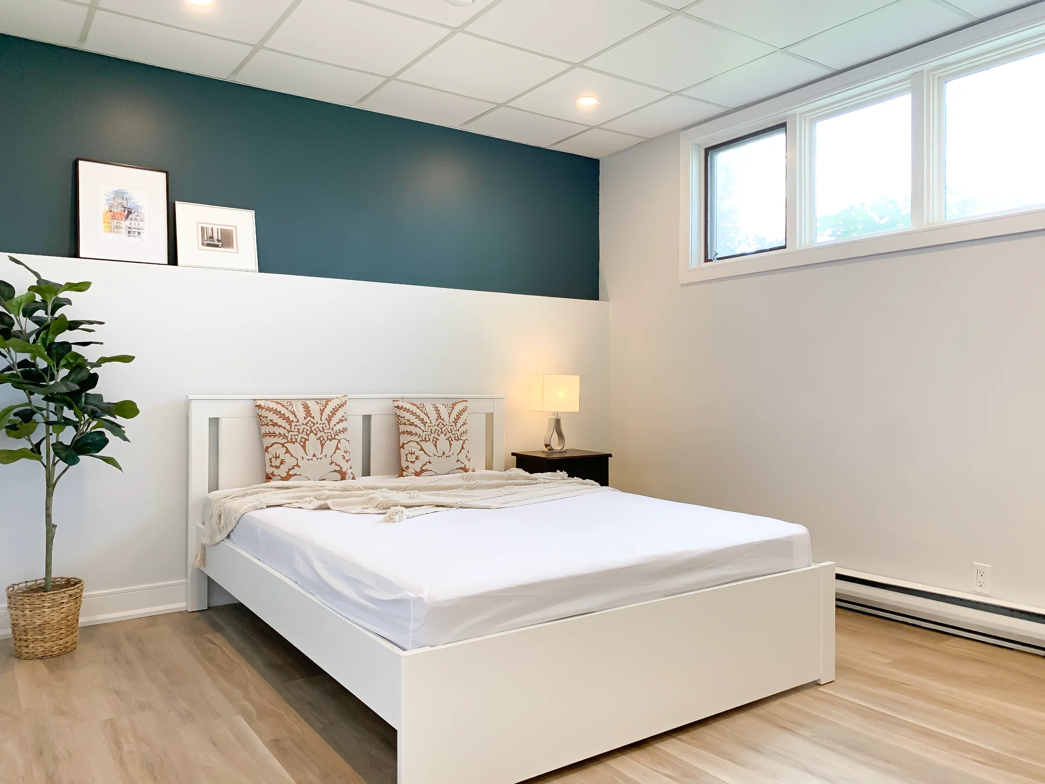 现有一间地下室卧室出租,窗户巨大,巨大储藏,带一个全新装修卫生间。共享厨房、餐厅与客厅空间。