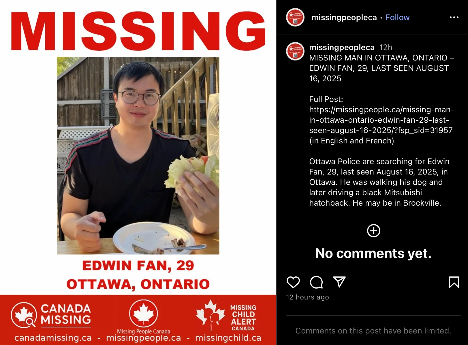 警察找到周六失踪,29岁的Edwin Fan的尸体,RIP!