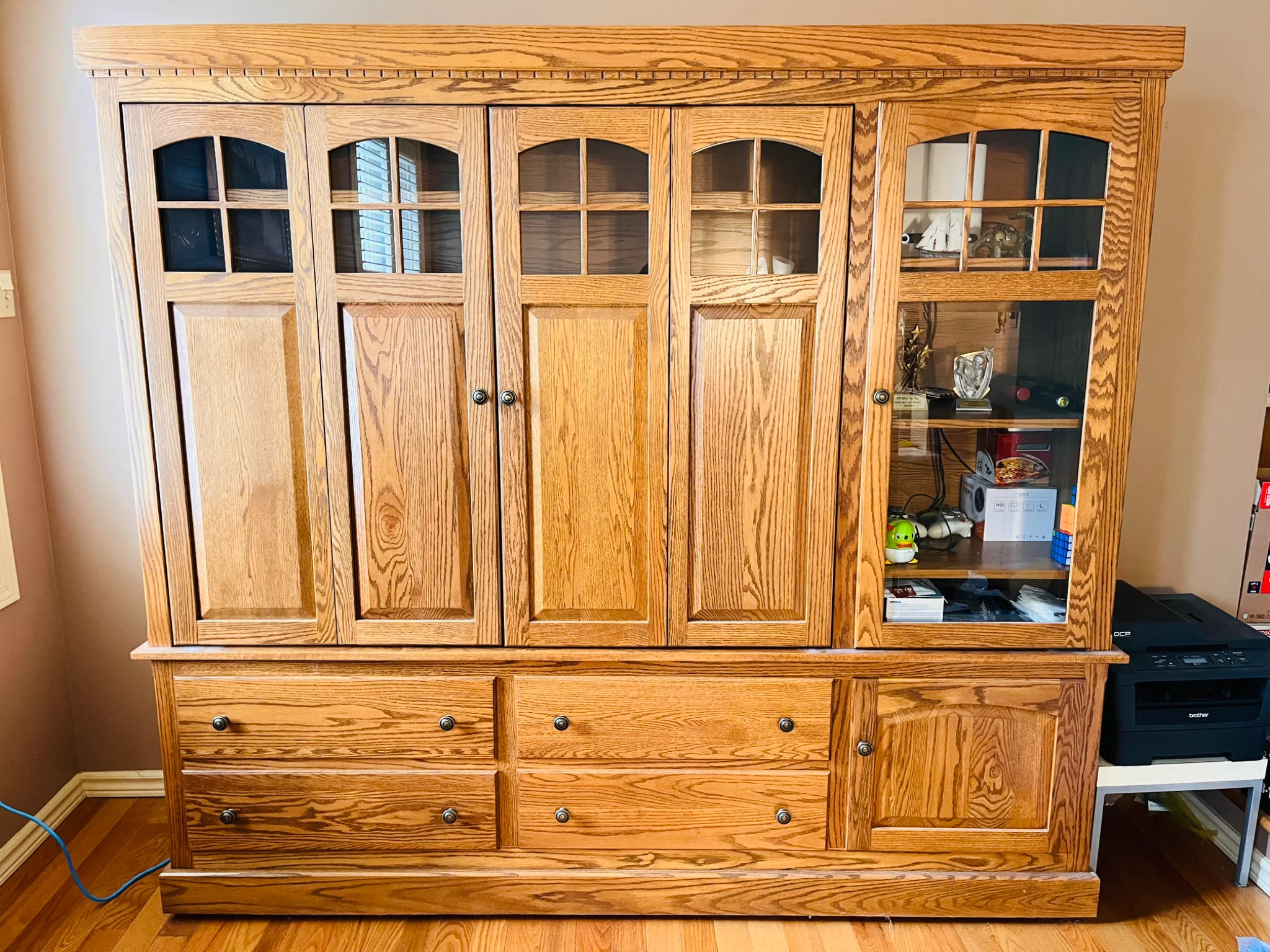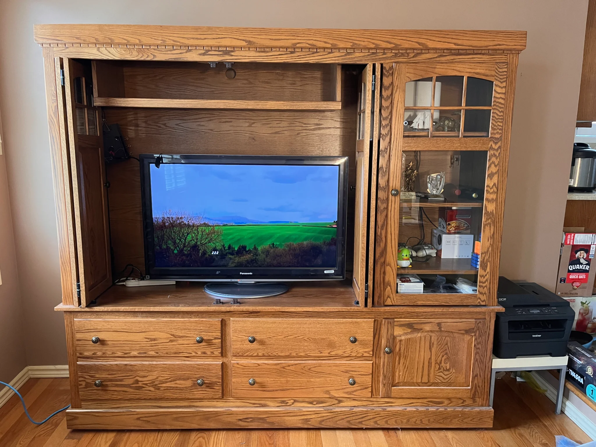 电视柜的门可以折叠关上,抽屉和柜子容量很大可以放很多东西
