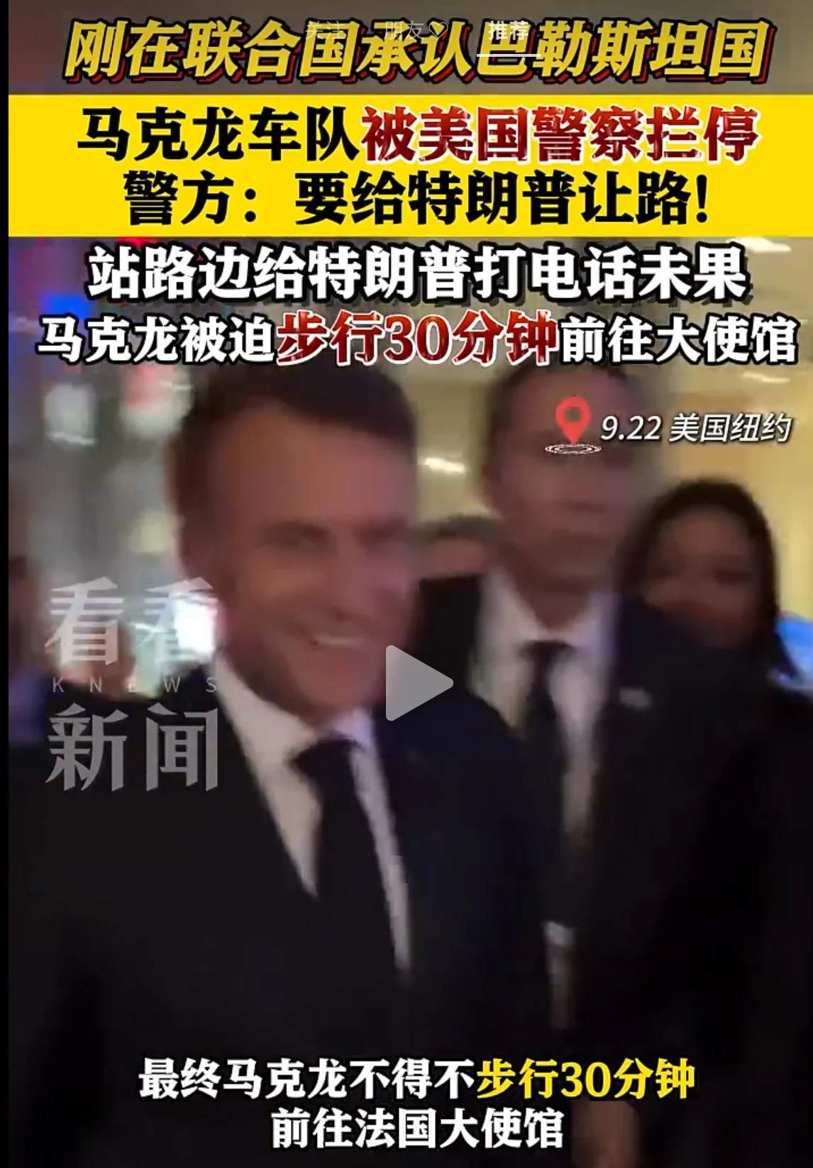 chicago666 本站元老 注册 2015-09-07 消息 8,192 荣誉分数 1,589 声望点数 323 2025-09-23 #2 時間與地點:2025年9月下旬,紐約曼哈頓區,聯合國總部附近。聯合國大會期間,全球領袖雲集,紐約警方與特勤局實施高規格安保,包括大範圍道路封鎖,以防範潛在威脅(如近期破獲的電信詐騙與安全漏洞)。 情節:馬克龍車隊原本預計順利抵達聯合國,但因特朗普車隊優先通行,導致周邊街道大規模封路。馬克龍夫婦的座車被困在東河邊的曼哈頓街頭,延誤約20-30分鐘。據目擊者描述,馬克龍下車與安保人員短暫交談,顯得有些無奈。最終,他透過手機直接撥打特朗普的電話,請求「讓我過去」("Let me through"),特朗普笑稱「歡迎來紐約,但交通就是這樣」,並協調後續通行。 媒體反應:這段插曲被視為「外交趣事」,象徵美法關係的親密(儘管兩國在烏克蘭援助與貿易議題上偶有分歧)。世界新聞網以「聯大因他封路…馬克宏堵在街上 致電川普:讓我過去」為標題報導,配以街頭照片,迅速在華文媒體與社群平台傳播。其他國際媒體如BBC與RFI未深入跟進,但提及紐約安保升級的背景。