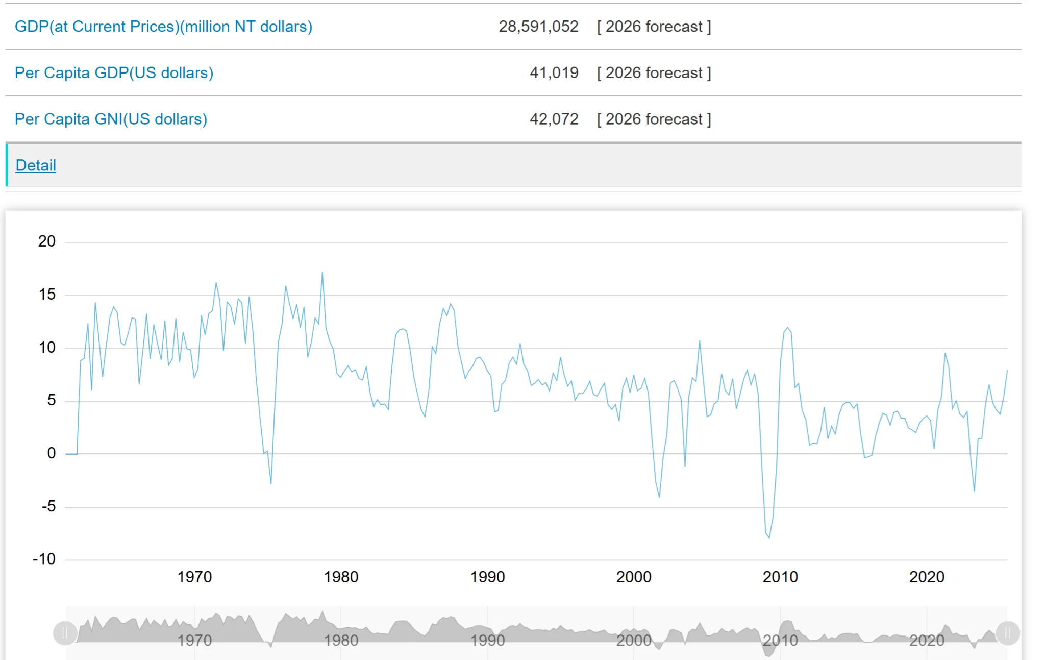 老蒋和小蒋时期,台湾的GDP增长的平均是超过开放党禁后的时期。
