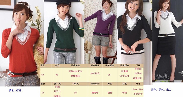 表现俐落形象☆钻扣衬领假两件 $43 商品简介~* 选用柔软细腻的优质针织材质 搭配提升知性美感的层次衬衫领 成功打造这款具备自信专业形象的假两件上衣 V型领口采用条纹式样,透露俐落知性品味 于衬领洒上细密银粉,彷佛闪耀星光 恰到好处的七分袖长,办公做事方便无累赘感 身为聪颖自信的新时代女性,不能没有一件喔^^ ps.假两件设计不可拆,腰带皆为另外搭配