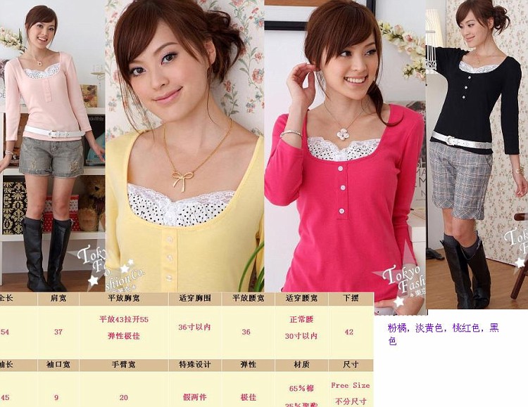 妆点俏丽率真☆内层点点假两件 $32 商品简介~* 这款展露层次感的假两件设计美衣 大圆领的素面T,露出迷人的蕾丝水玉点点图样 为你妆点俏丽率真的女孩表情~* 藉著适当的七分袖长,让你穿得随性自然 轻松穿上这么一件,就能随时亮丽出门^^ ps.假两件设计不可拆,腰带皆为另外搭配