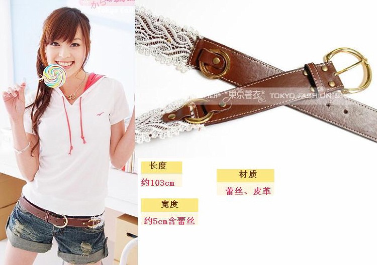 兼具百变风格与实用性☆金环蕾丝皮带 $22 商品简介~* 这款怎么搭怎么好看,实在令人一眼就会爱上的人气造型皮带 拥有彷佛小牛皮般细腻质感,并点缀上绝美钩织蕾丝花边 弥漫典雅气质更带点奢华美感! 金属部分更采用最IN的环状钉扣 为你成功打造耀眼无比的金色锋芒 不论是别在正中央亦或侧边使用,都各具不同风情 拥有它绝对能够满足你百变的风格造型与实用需求,大推荐! ps.蕾丝不可拆