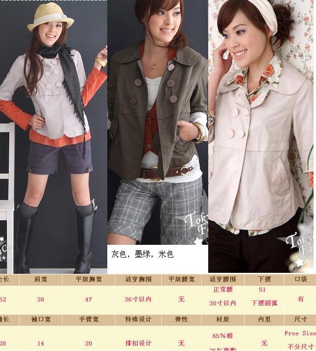cat_emma 新手上路 注册 2005-12-05 消息 2,195 荣誉分数 4 声望点数 0 2007-09-25 #578 展现英挺的个性☆立领铜扣外套 $43 商品简介~* 藉由俐落的军装剪裁及英挺的服装线条 表现独具帅气的极致魅力 短版样式制造俐落的层次感 采取挺拔的小立领及造型铜扣的个性元素 带你迈向具时尚感的率性路线 运用隐藏式袖带,可将袖子卷起扣上成率性短袖 或放下成简洁五分袖,都能自然展现内搭的造型层次 巧妙地于背部装饰俏丽蝴蝶结 为帅气风格带来一分女孩专属的甜美味道 只要换上它,就能展现英气逼人的亮眼风采^^ ps.铜扣皆不可开,内搭、项链及腰带皆为另外搭配 附件 10-vi.jpg 102 KB · 查看: 108