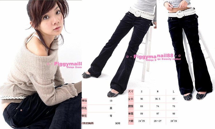 爱心钉扣绒布喇叭裤●黑 SML $45