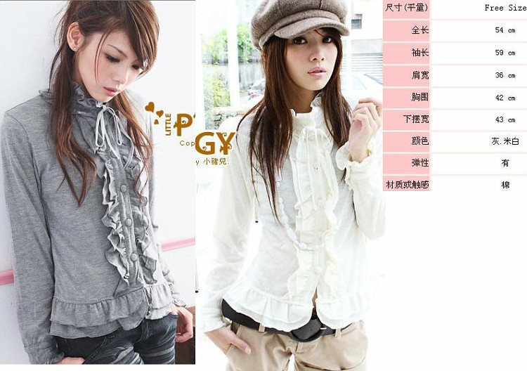 公主学院荷叶边立领细绳包扣衬衫 灰色,米白色 $35