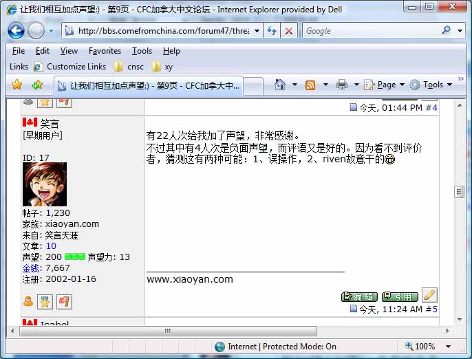 笑言 说: 有22人次给我加了声望,非常感谢。 不过其中有4人次是负面声望,而评语又是好的。因为看不到评价者,猜测这有两种可能:1、误操作,2、riven故意干的 点击展开... 你怎么看是负面声望的?